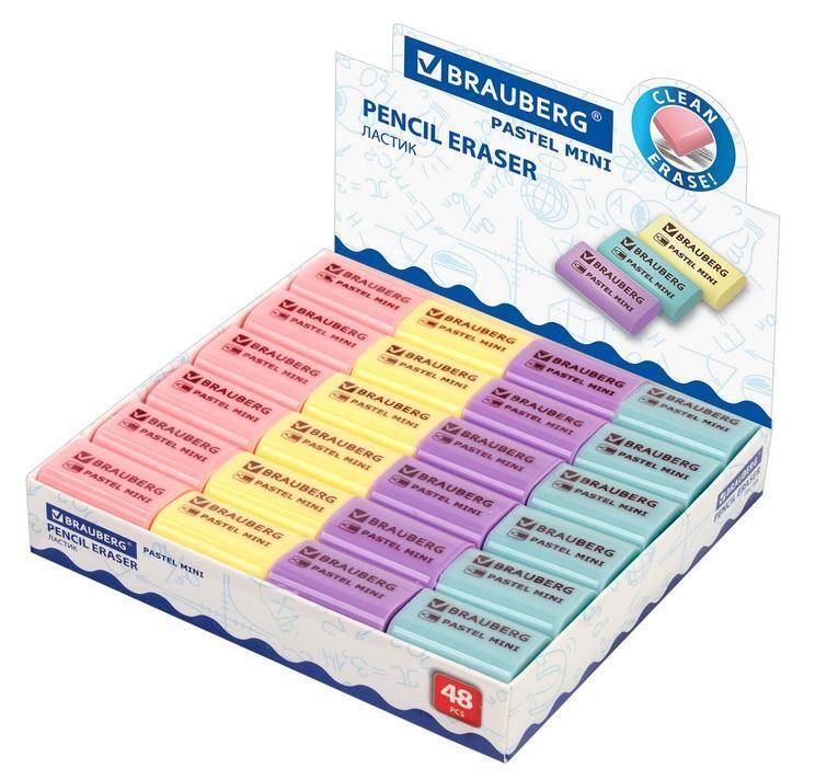 Представляем ластик 'Pastel Mini' от BRAUBERG – незаменимый помощник для школьников, студентов и офисных работников. С его помощью вы легко удалите карандашные пометки без повреждения бумаги.