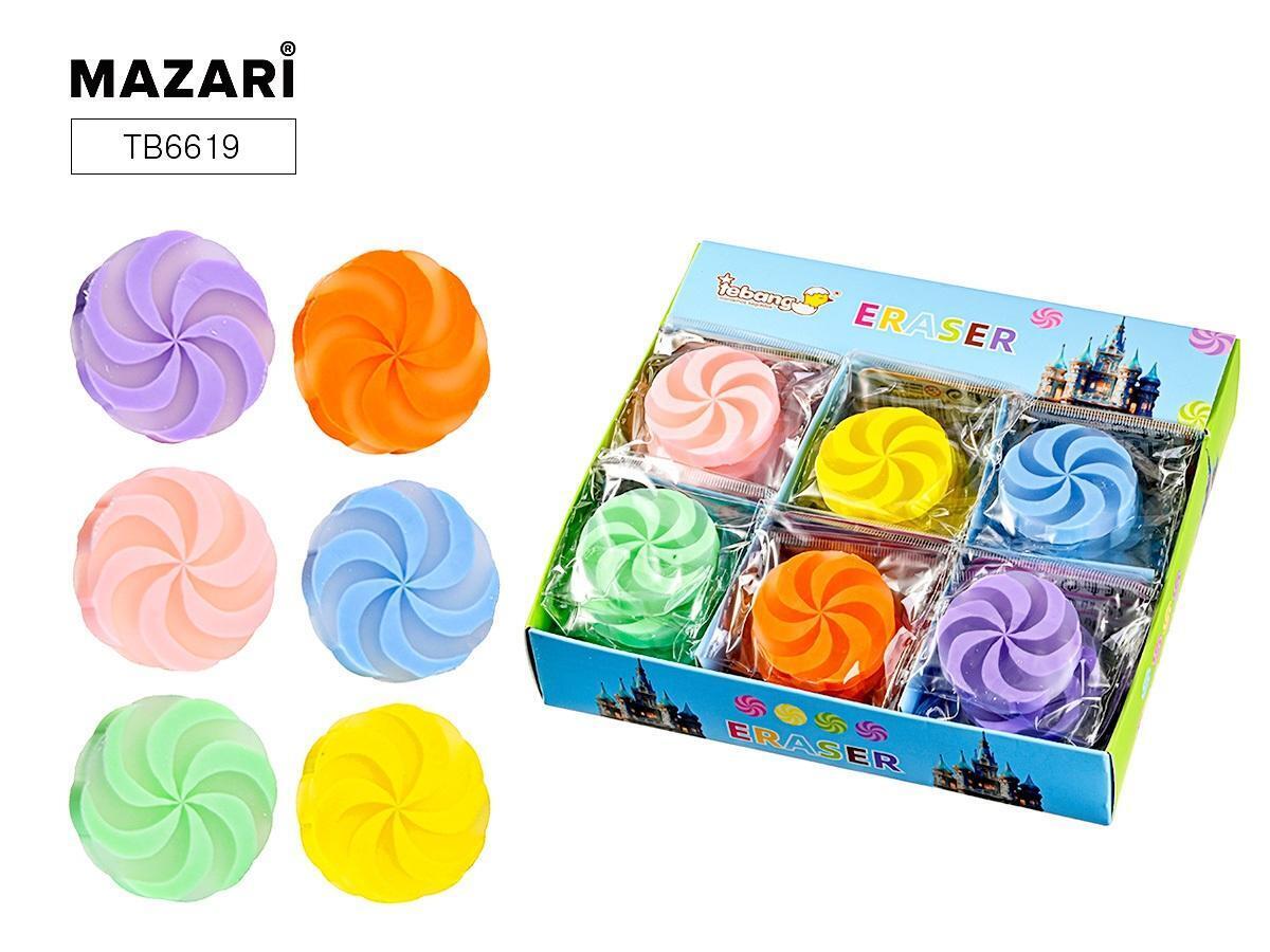 Ластик круглый 4х0,6 см, ПВХ, ассорти 6 цветов "Mazari", спиральный узор