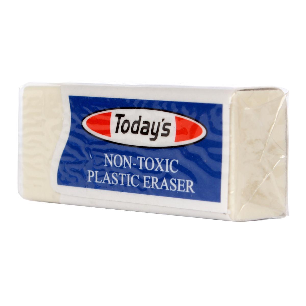 Размер: 4,3 × 1,7 × 1 см. Материал: высококачественный пластик. Цвет: белый. Упаковка: каждый ластик в отдельном картонном держателе, 48 шт в коробке.