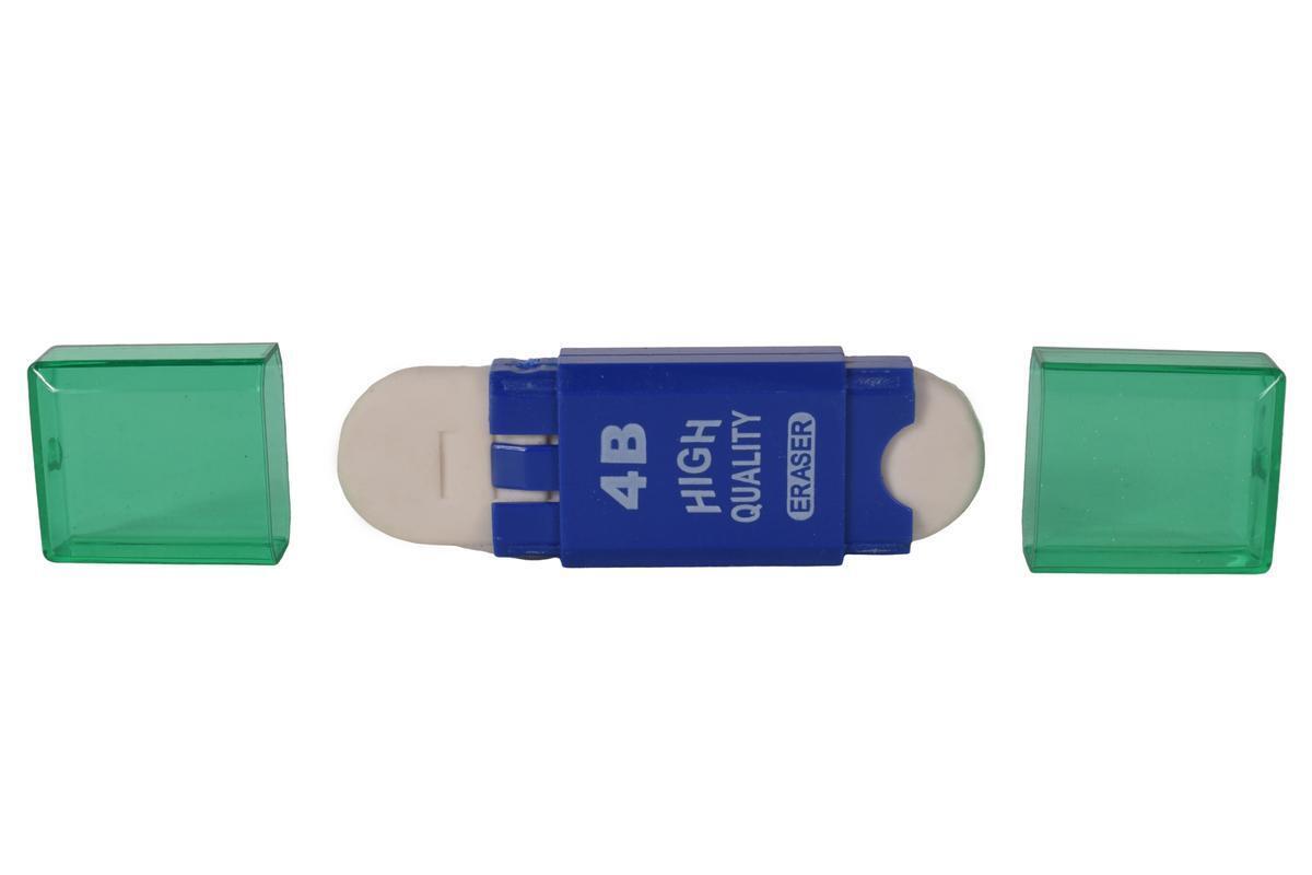 Ластик двусторонний в корпусе, 4 цвета, мягкий 4B, для карандаша