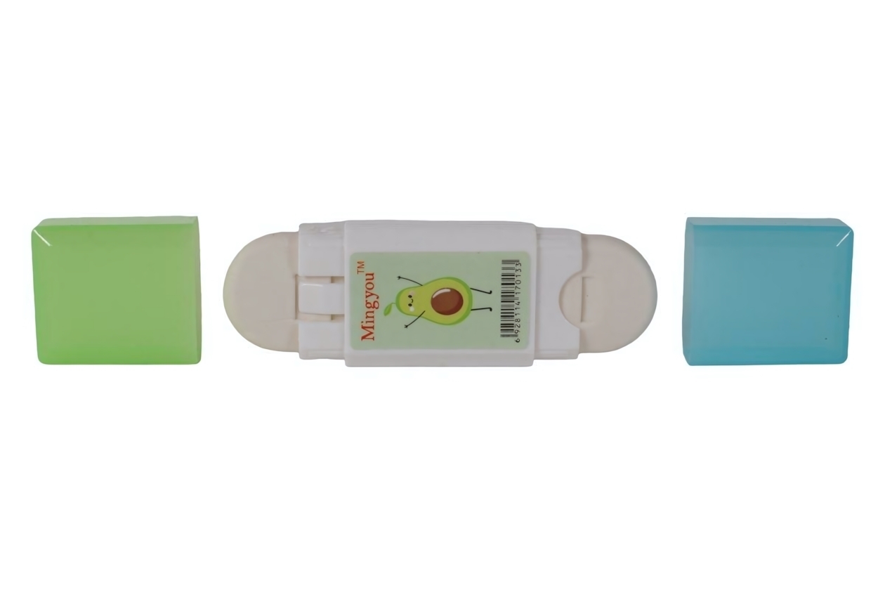 Ластик двусторонний «Авокадо», пластиковый футляр, зелёный и голубой, квадратная форма