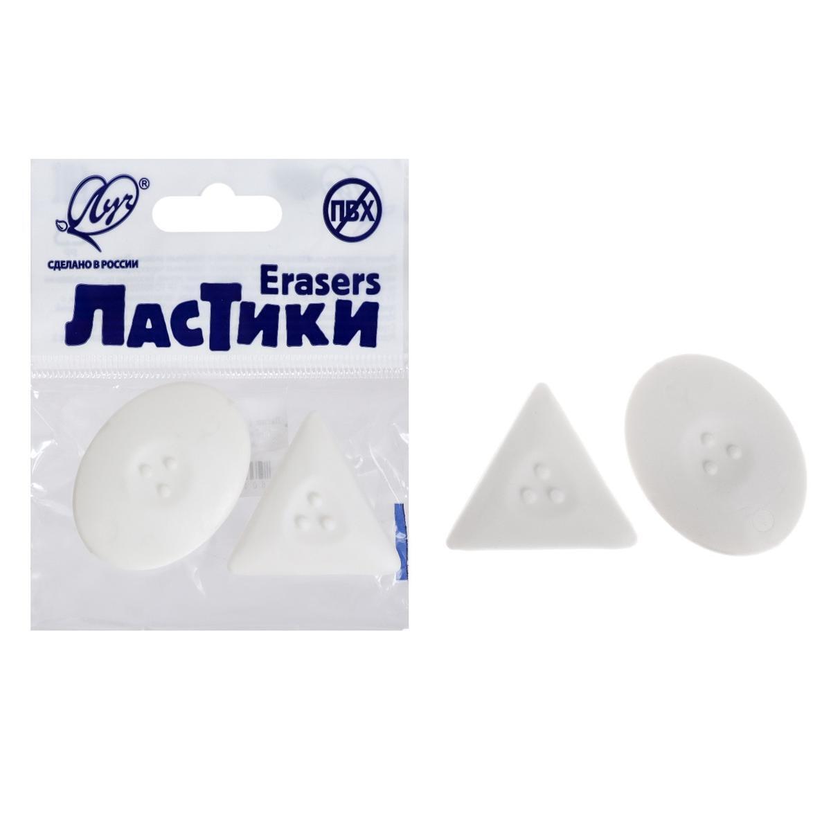 Ластик фигурный белый 'Геометрия', набор 2шт, овал и треугольник
