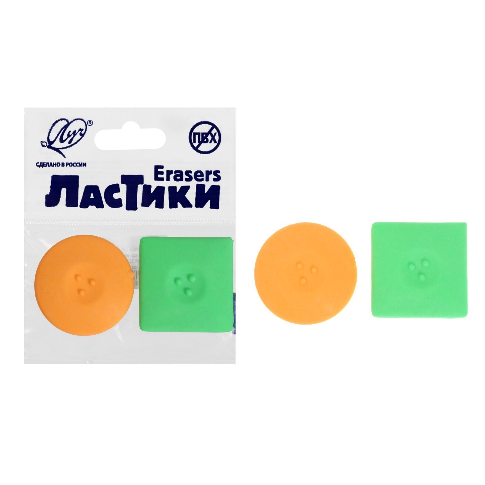 Ластики фигурные флуоресцентные, 2 шт. (круг, квадрат), яркие цвета, для школы и офиса