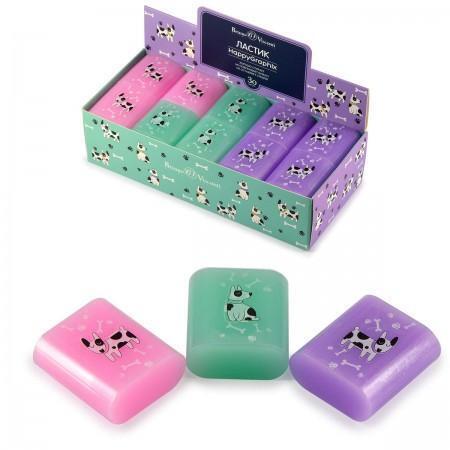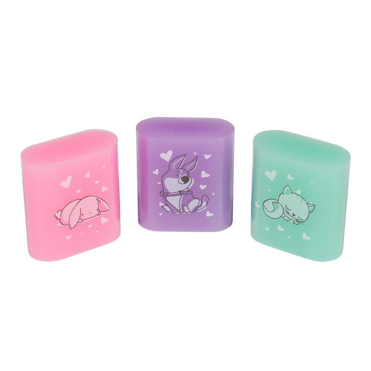 Ластик Bruno Visconti "HappyGraphix Pastel", 3 цвета: розовый, зеленый, фиолетовый, милые зверята
