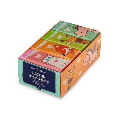Погрузитесь в мир ярких красок и забавных зверят с цветными ластиками "HappyGraphix" от Bruno Visconti. Эти мягкие ластики не только эффективно удаляют следы от карандашей, но и дарят позитивные эмоции благодаря своему дизайну.