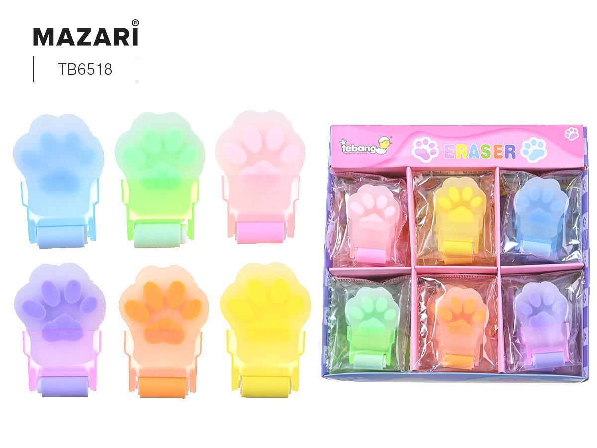 Ластик фигурный "ЛАПКИ" с роликом 3.5*5.3*1см, ассорти 6 цветов