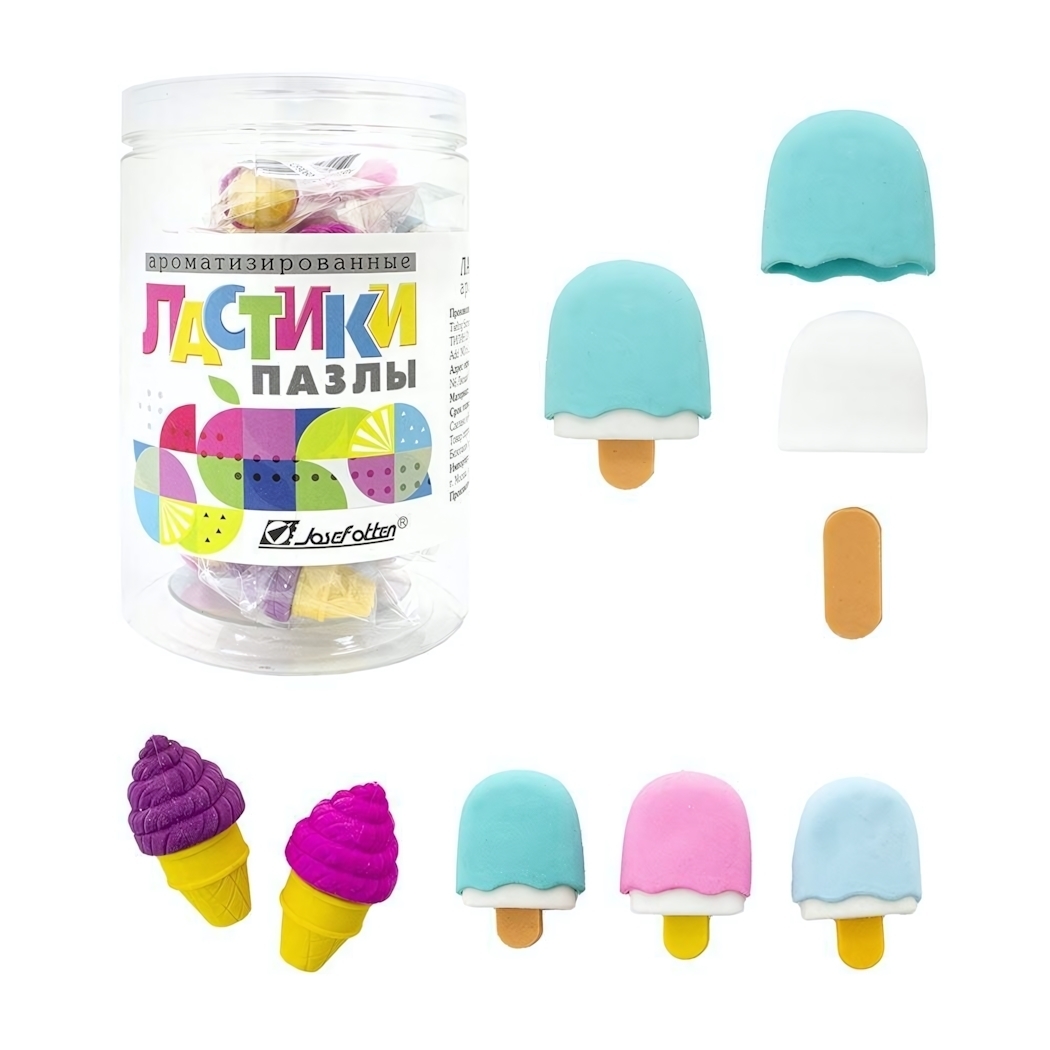 Ластик-пазл «Мороженое», ароматизированный, ассорти форм, каучук, в пластиковой банке