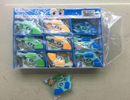 - Оригинальный дизайн: Форма пистолета и яркие цвета (синий, желтый, зеленый) делают его привлекательным и запоминающимся.