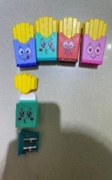Ластик с точилкой 2в1 «Картофель фри», 4 цвета, резина и пластик, школьный аксессуар