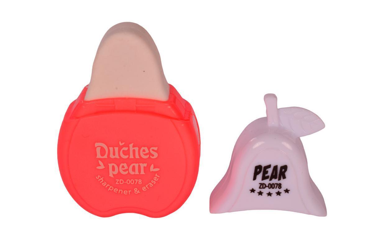 Представляем ластик с точилкой 'Duches pear' – практичный 2-в-1 аксессуар для школьников и офисных работников. Его форма в виде груши не только привлекает внимание, но и обеспечивает комфортное использование.