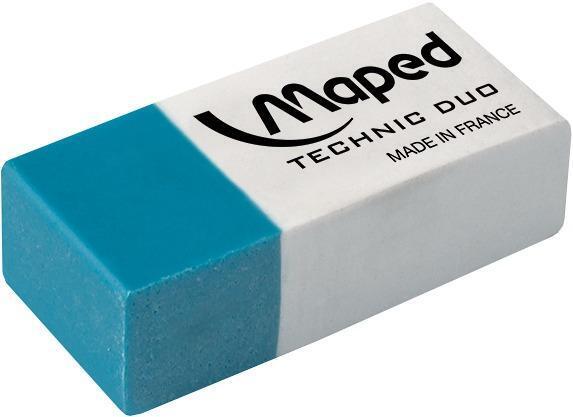 Ластик Technic Duo создан для тех, кто ценит точность и аккуратность в работе. Благодаря уникальной двухцветной конструкции вы получаете два инструмента в одном: белая часть легко справляется с карандашом, а синяя — с термочувствительными чернилами.