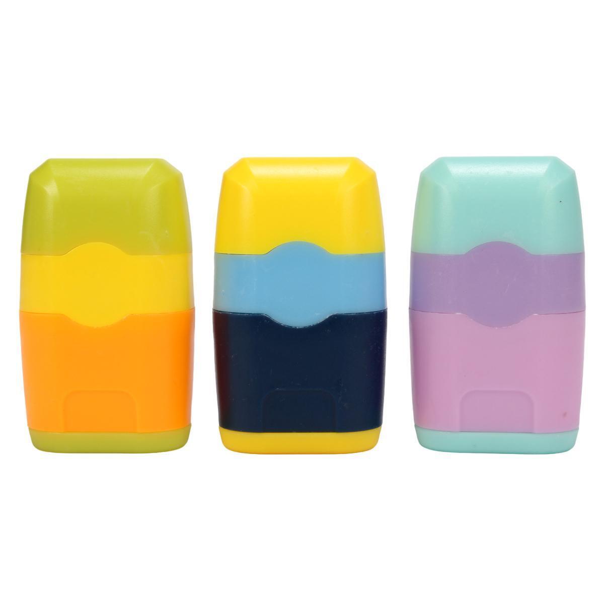 Точилка-ластик двойная, 2 отверстия, цветной микс, пластик/резина