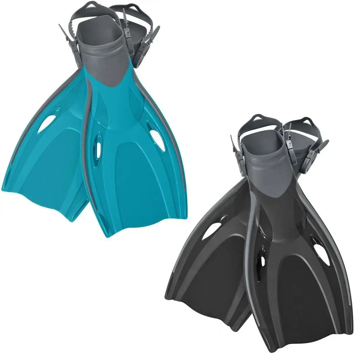 Ласты изготовлены из прочного пластика, устойчивого к деформациям и воздействию соленой воды. Размерный диапазон 37-41 подойдет для большинства взрослых пользователей. Два классических цвета (голубой и черный) позволят подобрать вариант под ваше снаряжение.