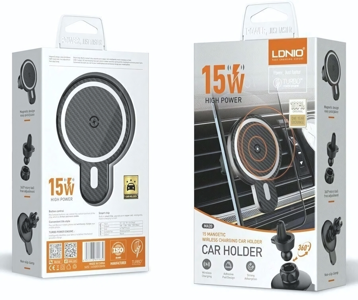 LDNIO MA20 легко устанавливается в любом автомобиле и подходит для большинства современных смартфонов, поддерживающих стандарт Qi. Просто прикрепите устройство к магнитному держателю, и ваш телефон будет надежно зафиксирован, а также заряжен во время поездки. Это идеальное решение для тех, кто много времени проводит в дороге.