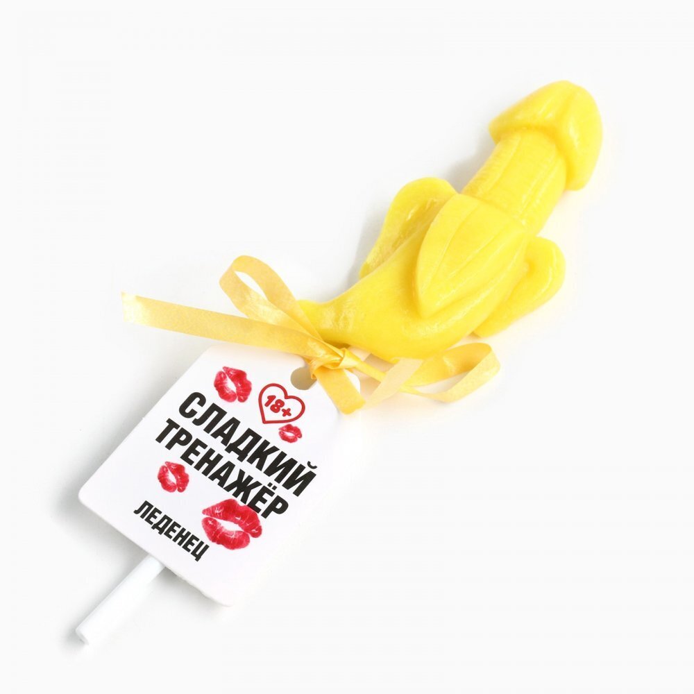 Погрузитесь в мир сладостей с леденцом на палочке 'Сладкий тренажёр'. Этот уникальный продукт не только порадует вас своим вкусом, но и добавит нотку игривости в вашу жизнь. Яркий желтый цвет и форма, напоминающая определенный предмет, делают его идеальным подарком для взрослых, желающих разнообразить свои моменты удовольствия.