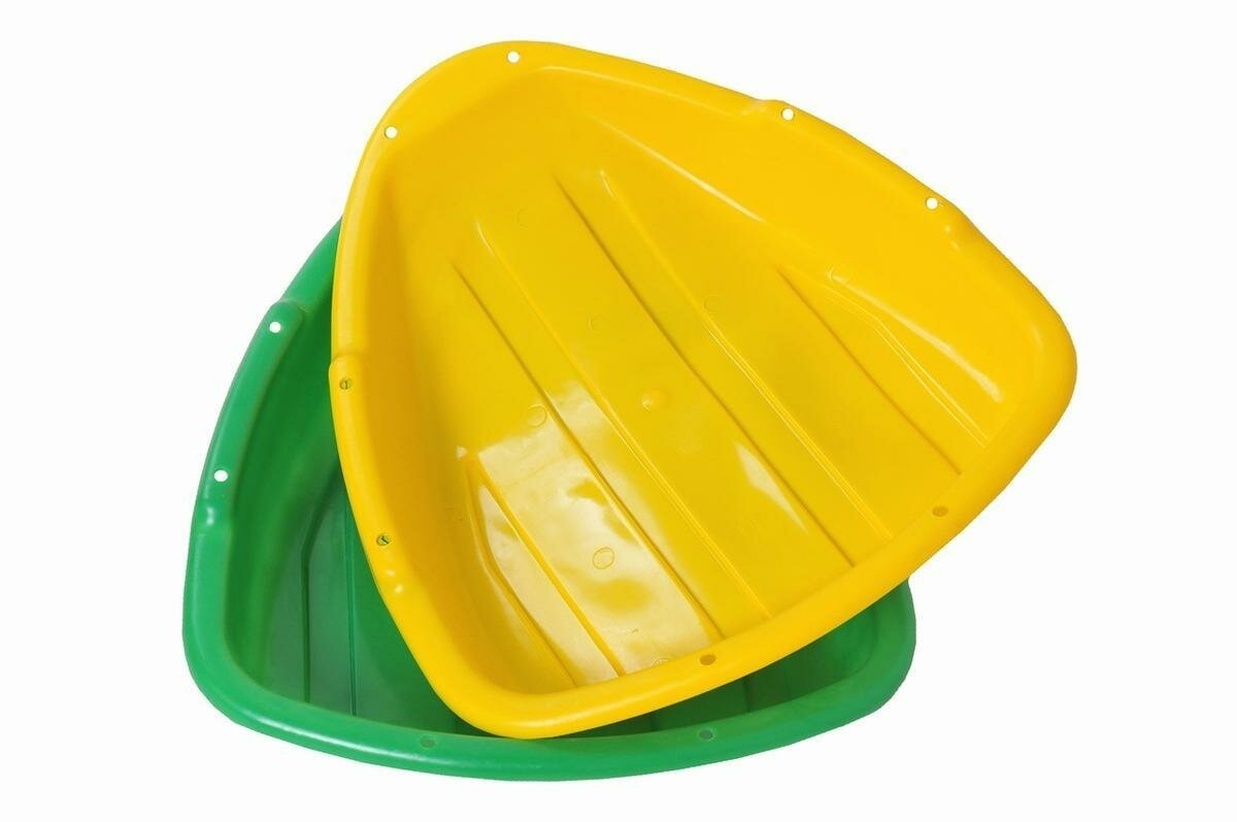 Достаточно положить ледянку на снег и скатить её вниз – ребра внутри повышают устойчивость, а два отверстия позволяют надёжно удержать её в руках. Идеальна для парков, дворов и дачных участков.