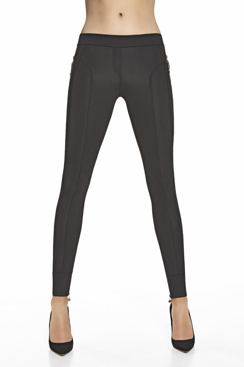 Легинсы с карманами на замочках, плотность 200 ден, черный, размер S, 85% полиэстер, 15% эластан
