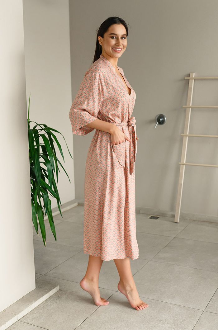 Погрузитесь в атмосферу уюта и расслабления с легким домашним халатом Aleksa. Этот халат, выполненный из 100% вискозы, подарит вам ощущение комфорта и свободы движений. Его свободный силуэт и длина до середины голени делают его идеальным выбором для домашнего использования, а разноцветный принт добавляет яркости в ваш повседневный образ.