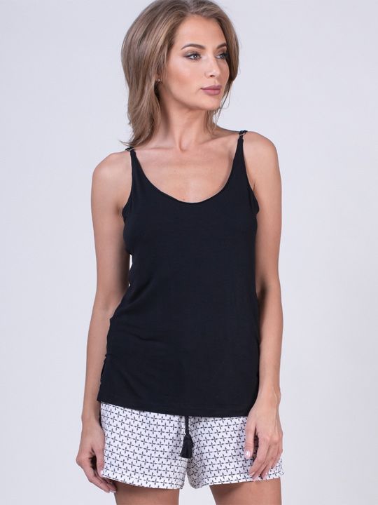 Этот легкий комплект из вискозы создан для тех, кто ценит уют и свободу движений. Мягкая ткань нежно обволакивает тело, обеспечивая максимальный комфорт во время отдыха, сна или неспешных домашних дел. Идеальное сочетание стильного топа и удобных шорт делает этот набор универсальным решением для вашего гардероба.