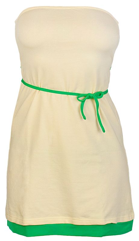 Пляжное платье короткое с поясом, облегающее, желтое с зеленой отделкой, размер M, 94% вискоза, 6% эластан
