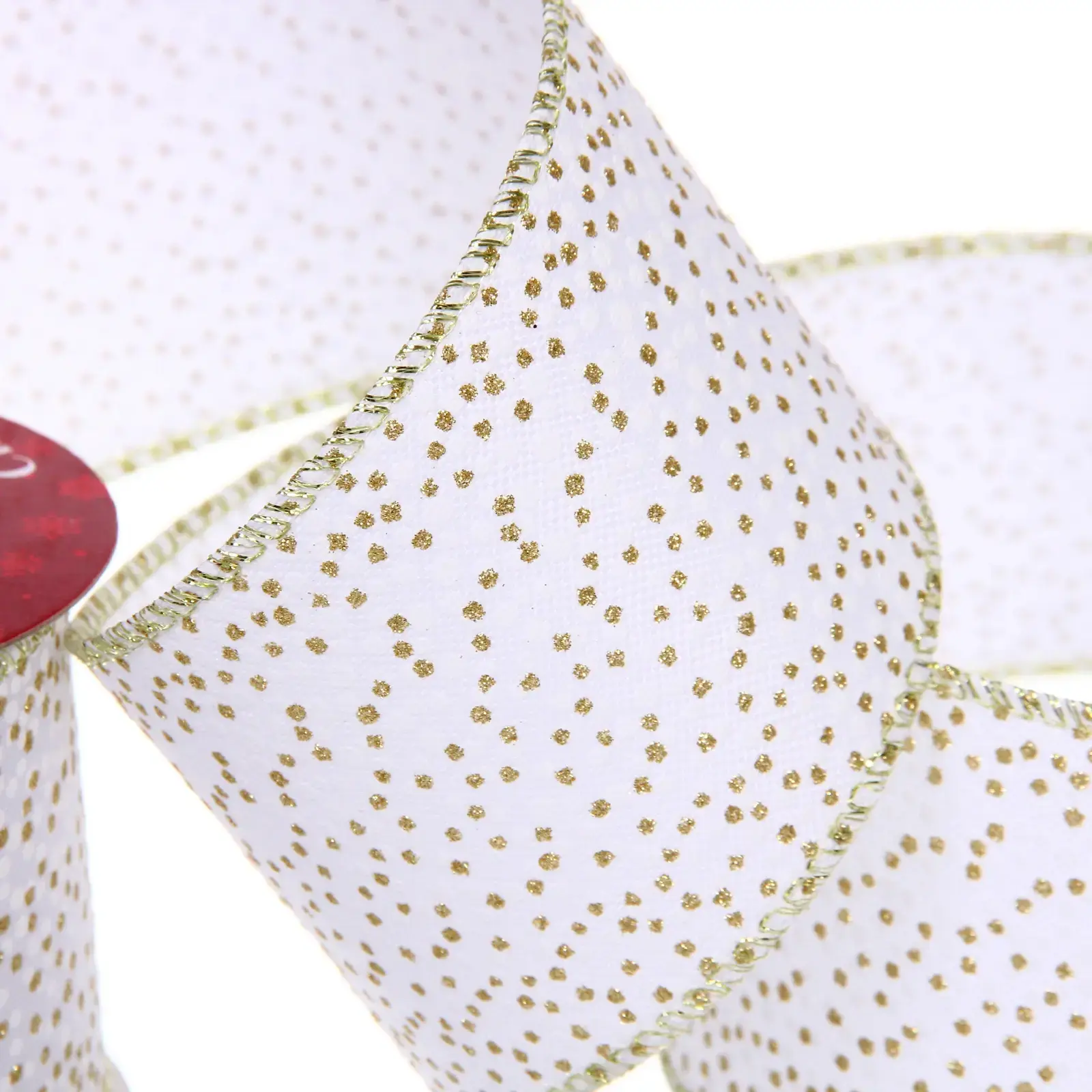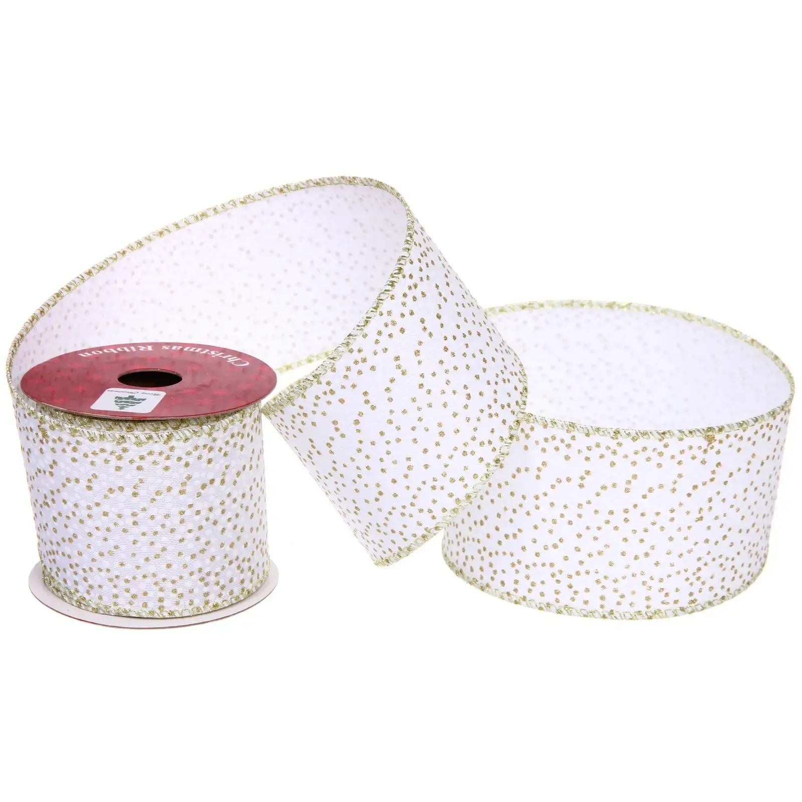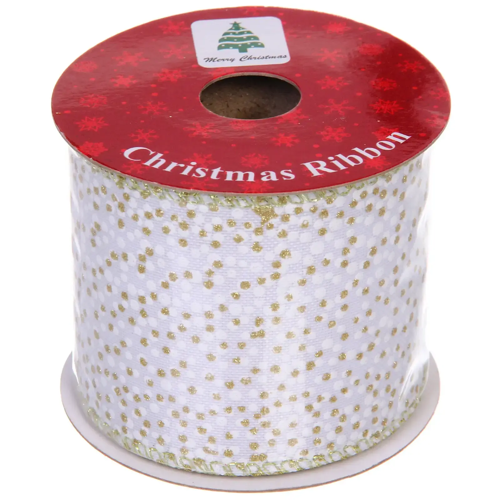 Превратите любое пространство в сказочную новогоднюю сцену с помощью элегантной ленты 'Алмазная россыпь'. Идеальное сочетание белоснежного фона и мерцающих золотых акцентов добавит нотку роскоши вашему декору.