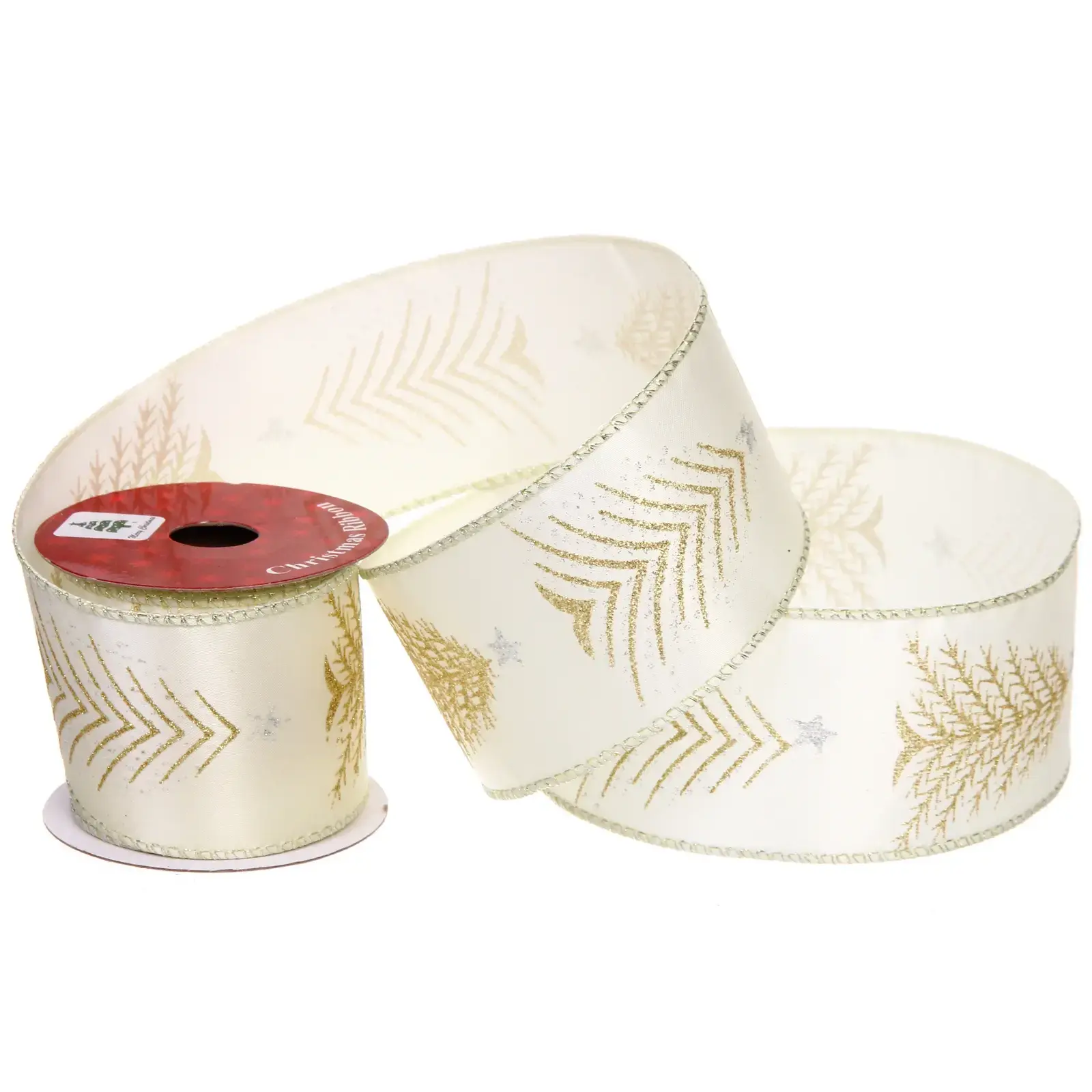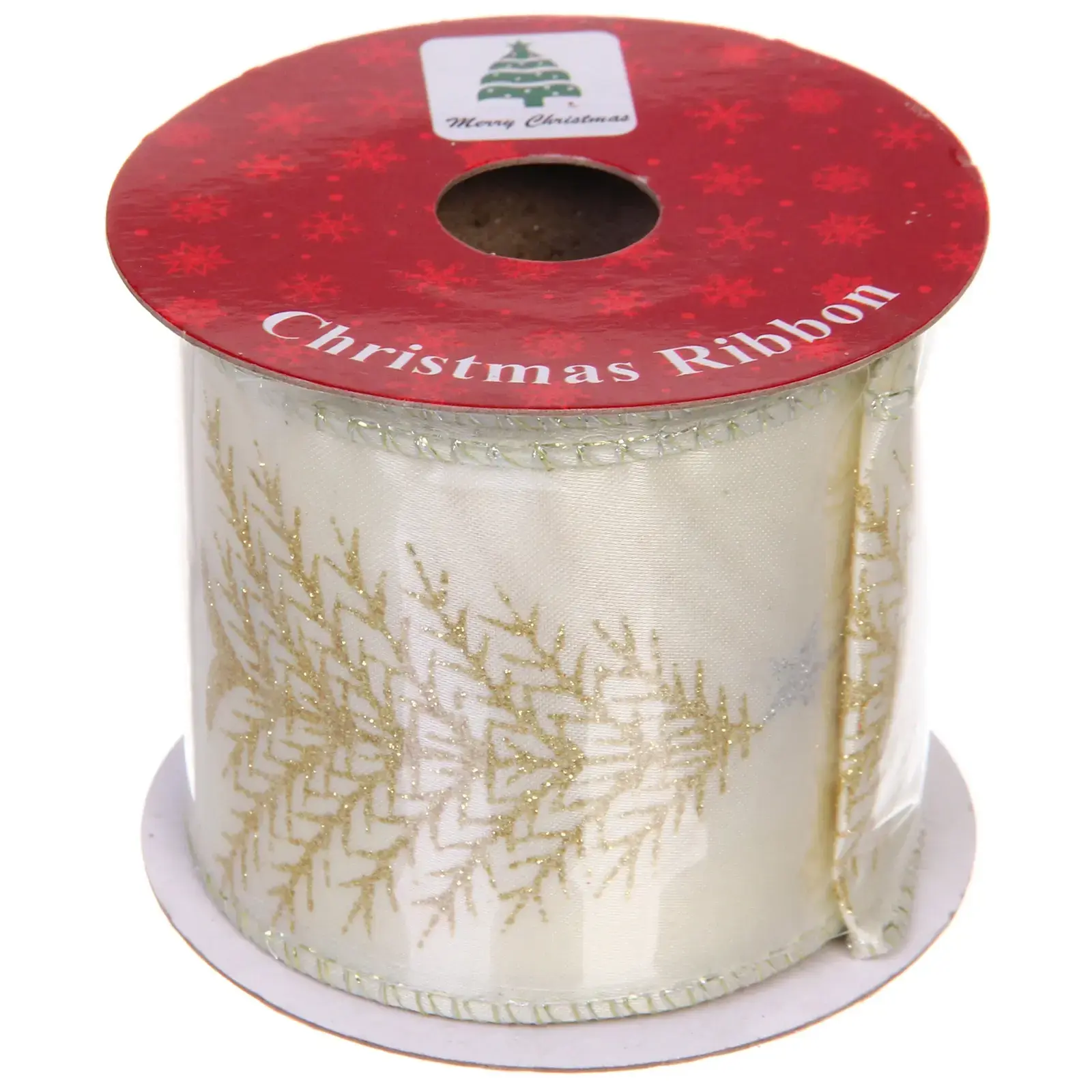 Лента поставляется в удобной катушке с центральным отверстием, что обеспечивает легкость использования и хранения. Рисунок выполнен в виде елочных мотивов, создающих особую праздничную атмосферу.