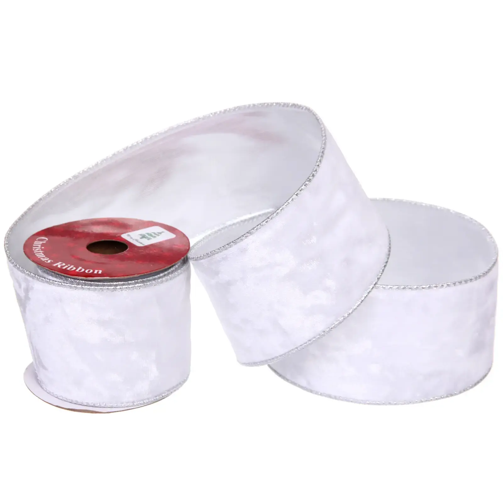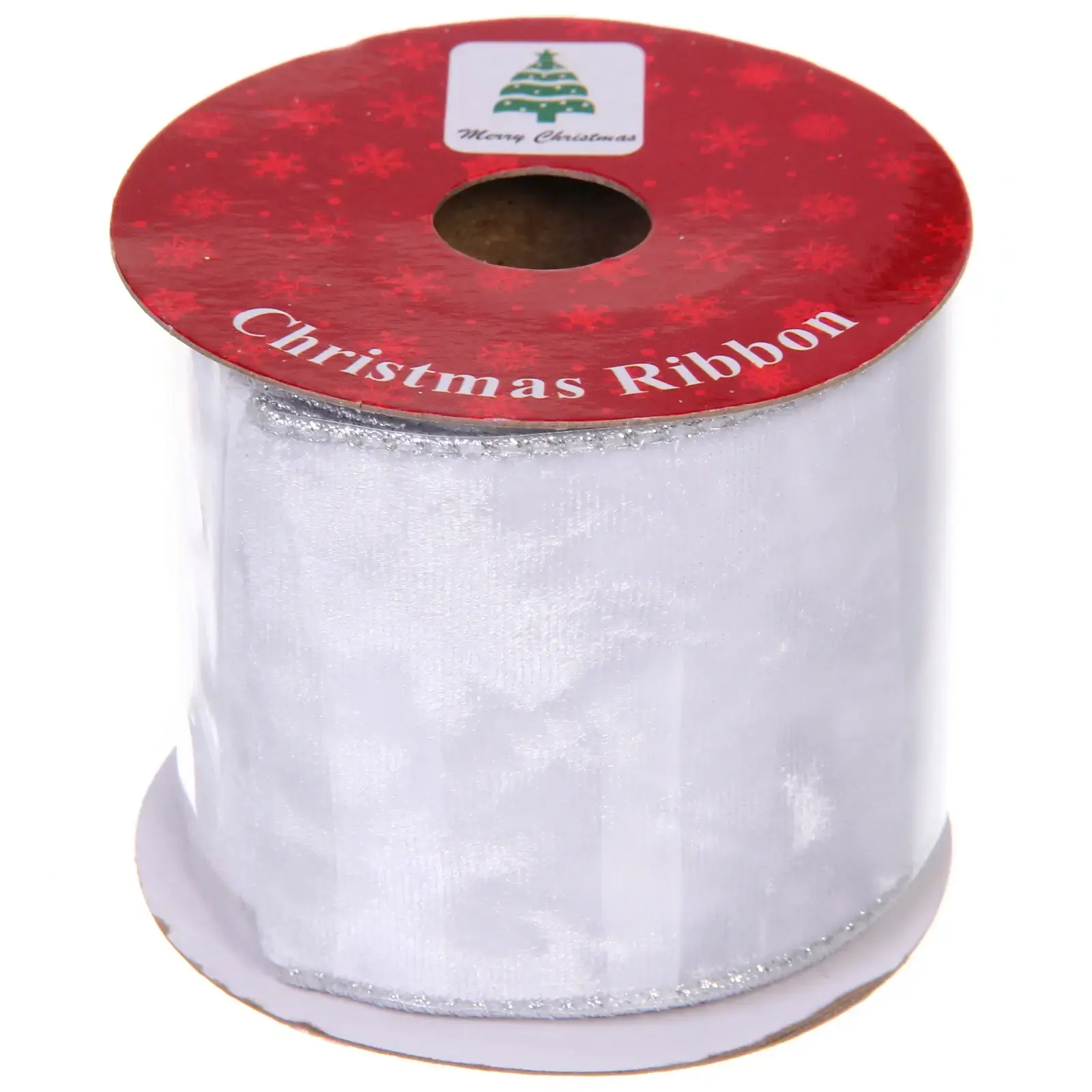 Лента декоративная "Мгновение" 6,3х270см, белый бархат с серебристым кантом