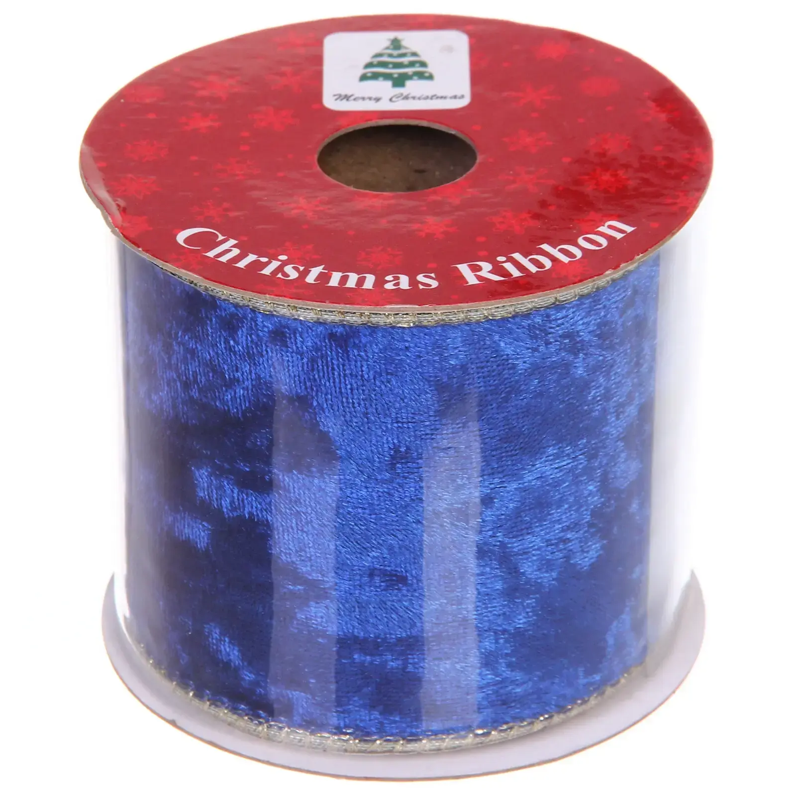 Лента декоративная "Мгновение" 6,3х270см, синий с золотом, для новогоднего оформления