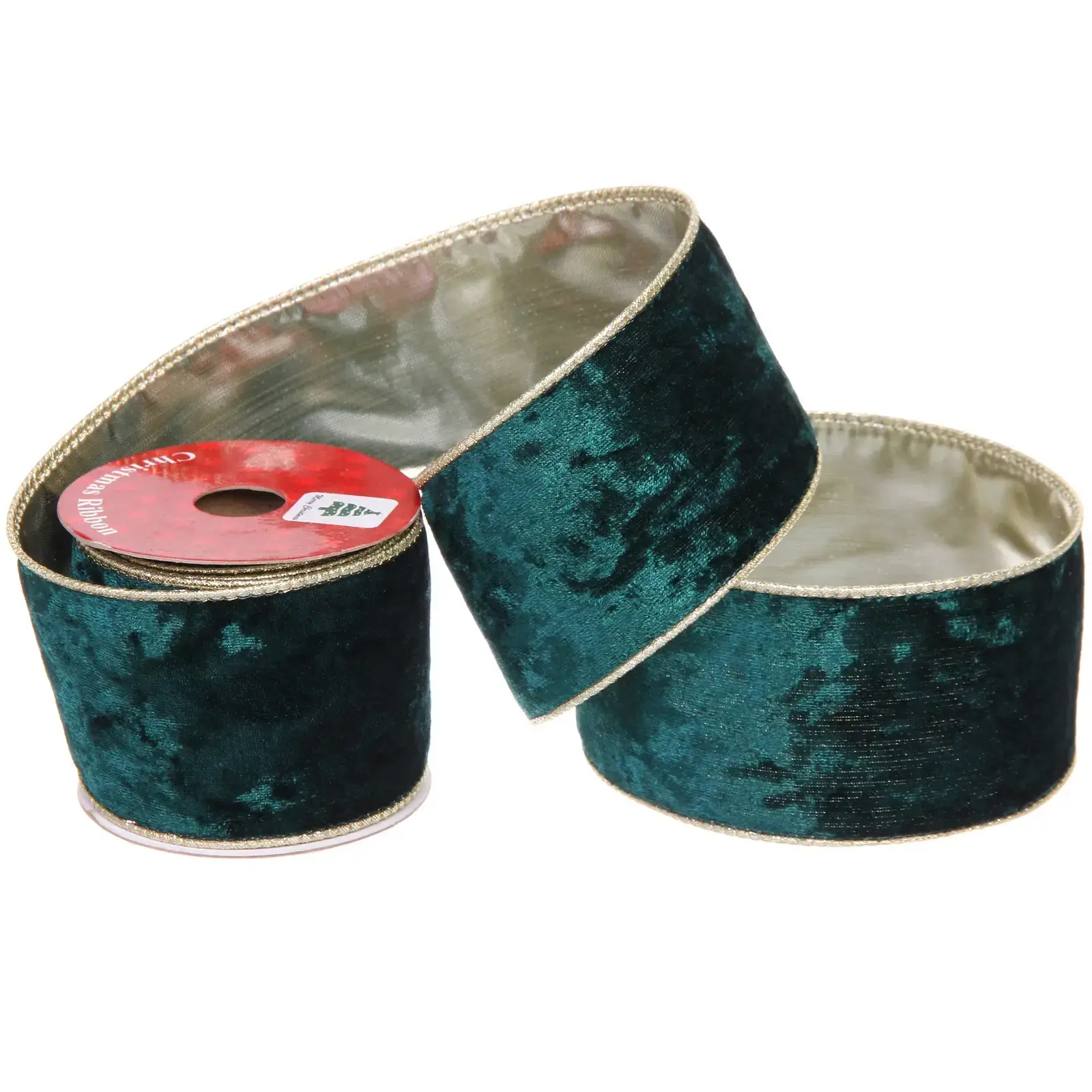 Погрузитесь в атмосферу зимней магии благодаря элегантной бархатной ленте глубокого изумрудного оттенка. Благородный материал и золотистая окантовка добавят роскоши любому декору.