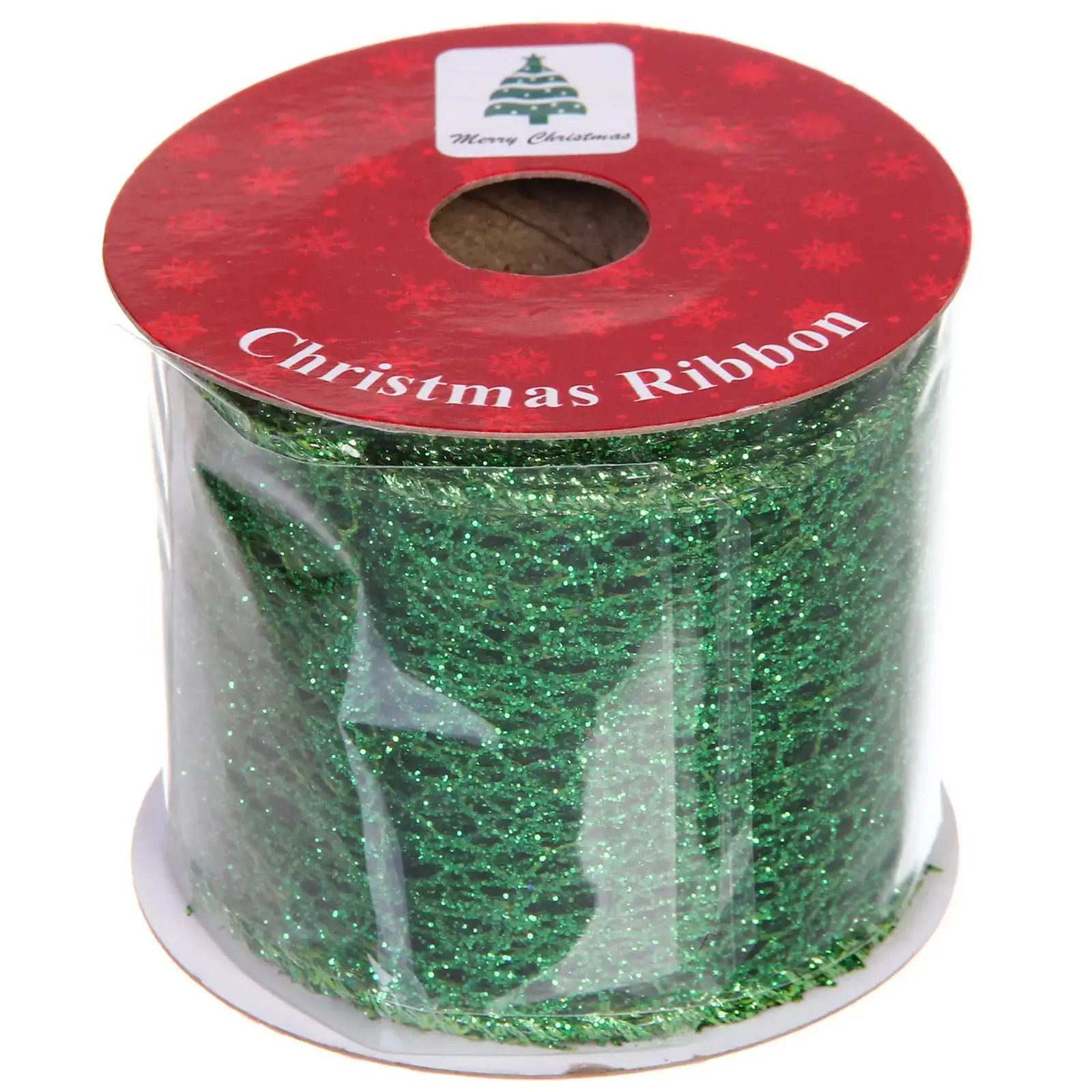 Лента декоративная 'Сказка' 6.3см х 2.7м, изумрудный блеск, полиэстер