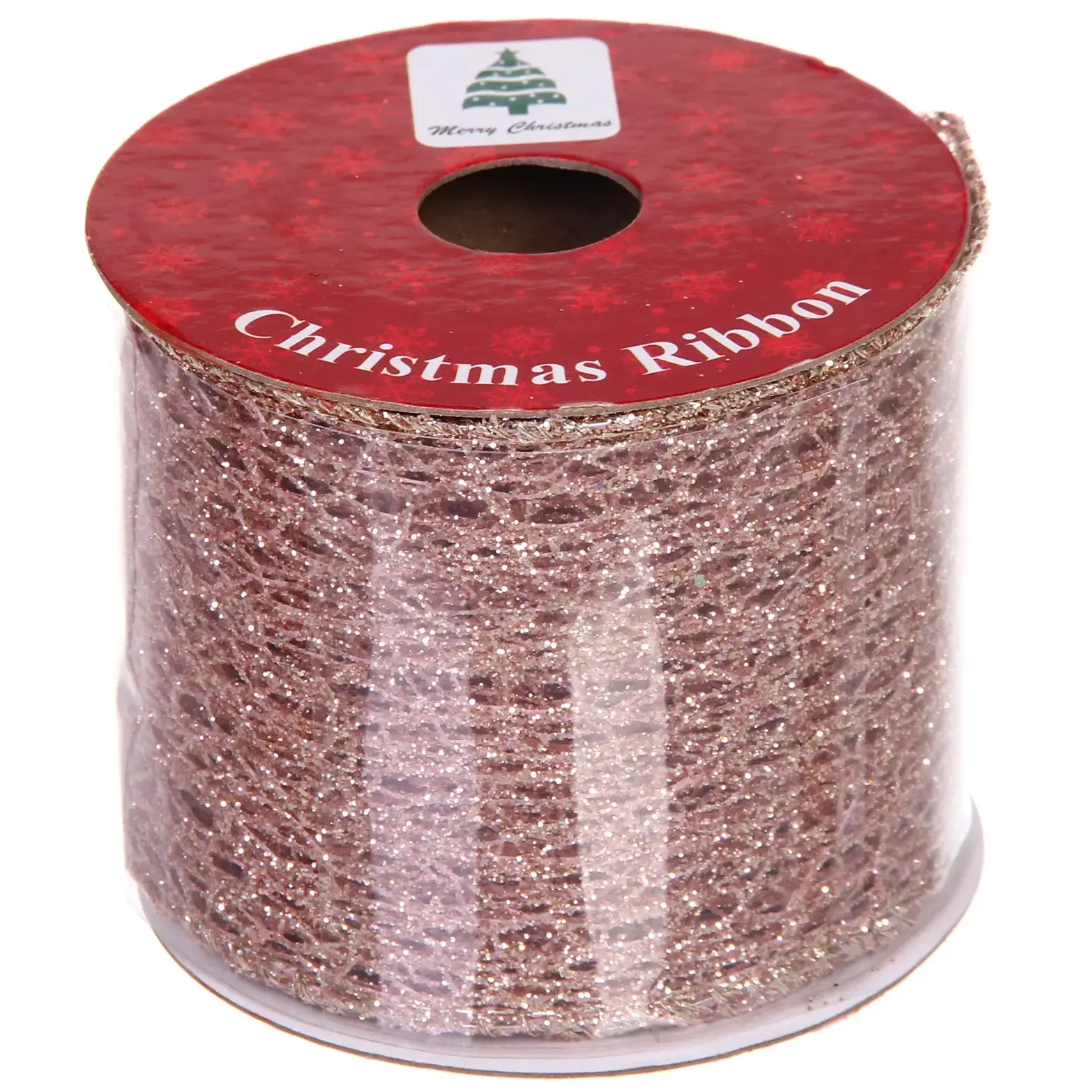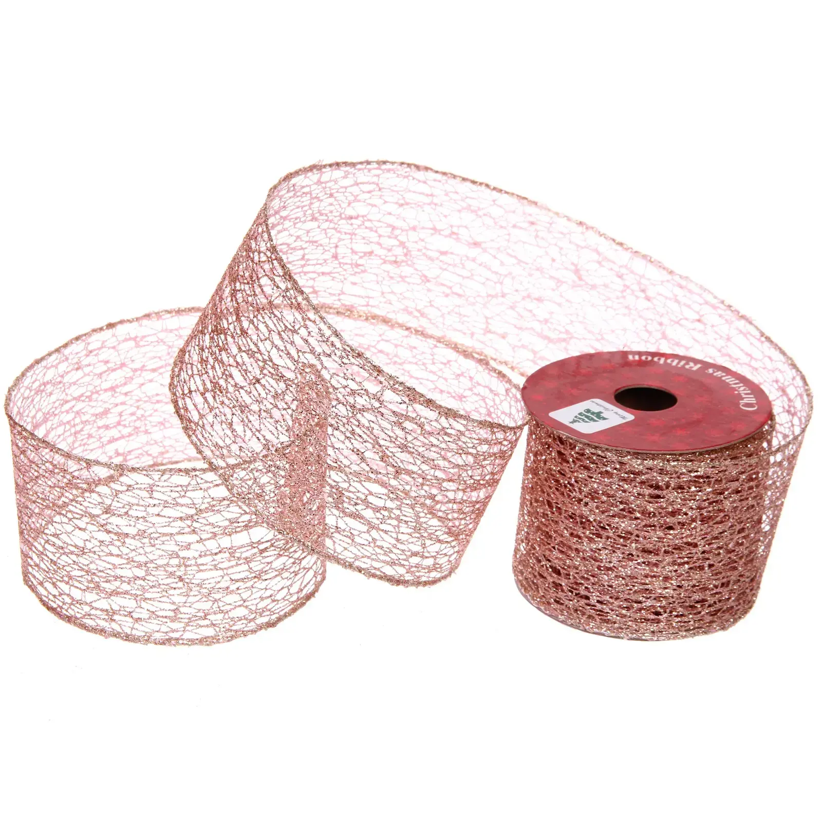 Лента декоративная "Сказка" 6,3 см х 2,7 м, розовое золото, сетчатая структура