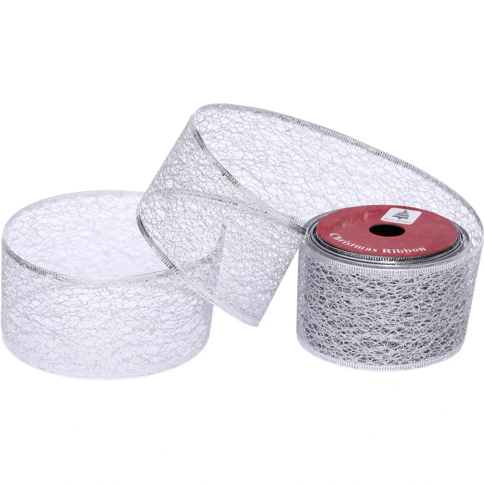 Лента декоративная "Сказка" 6,3 см х 2,7 м, серебро, для новогоднего оформления