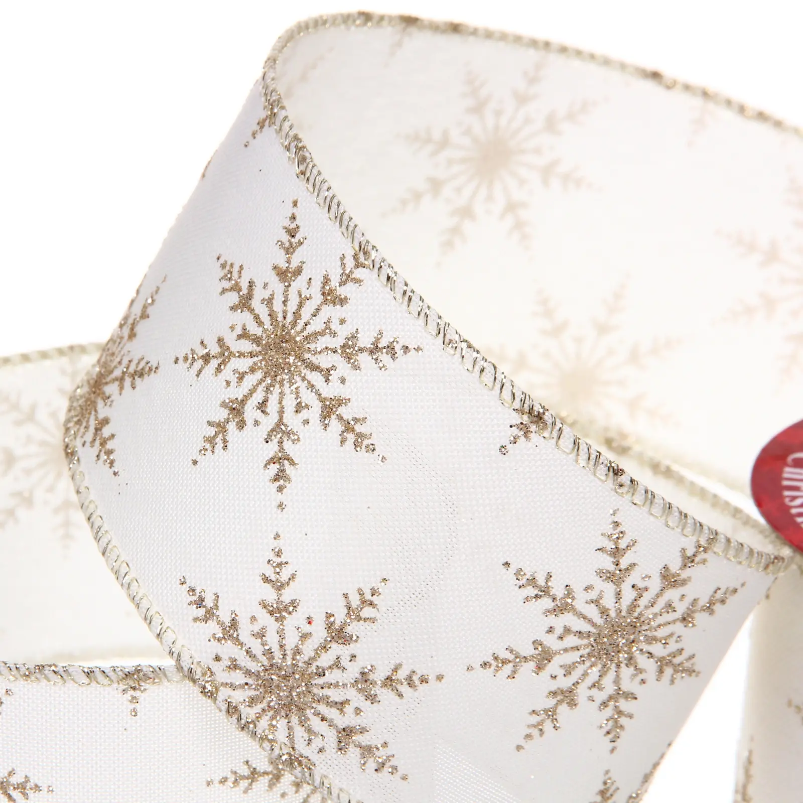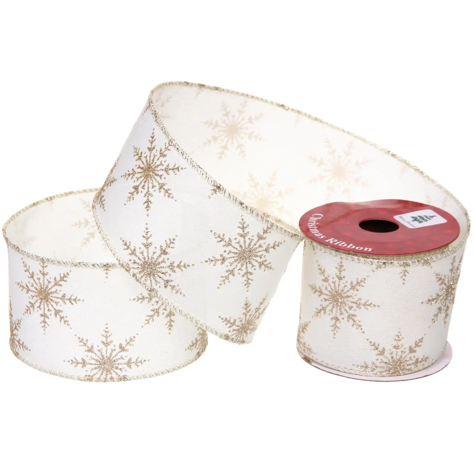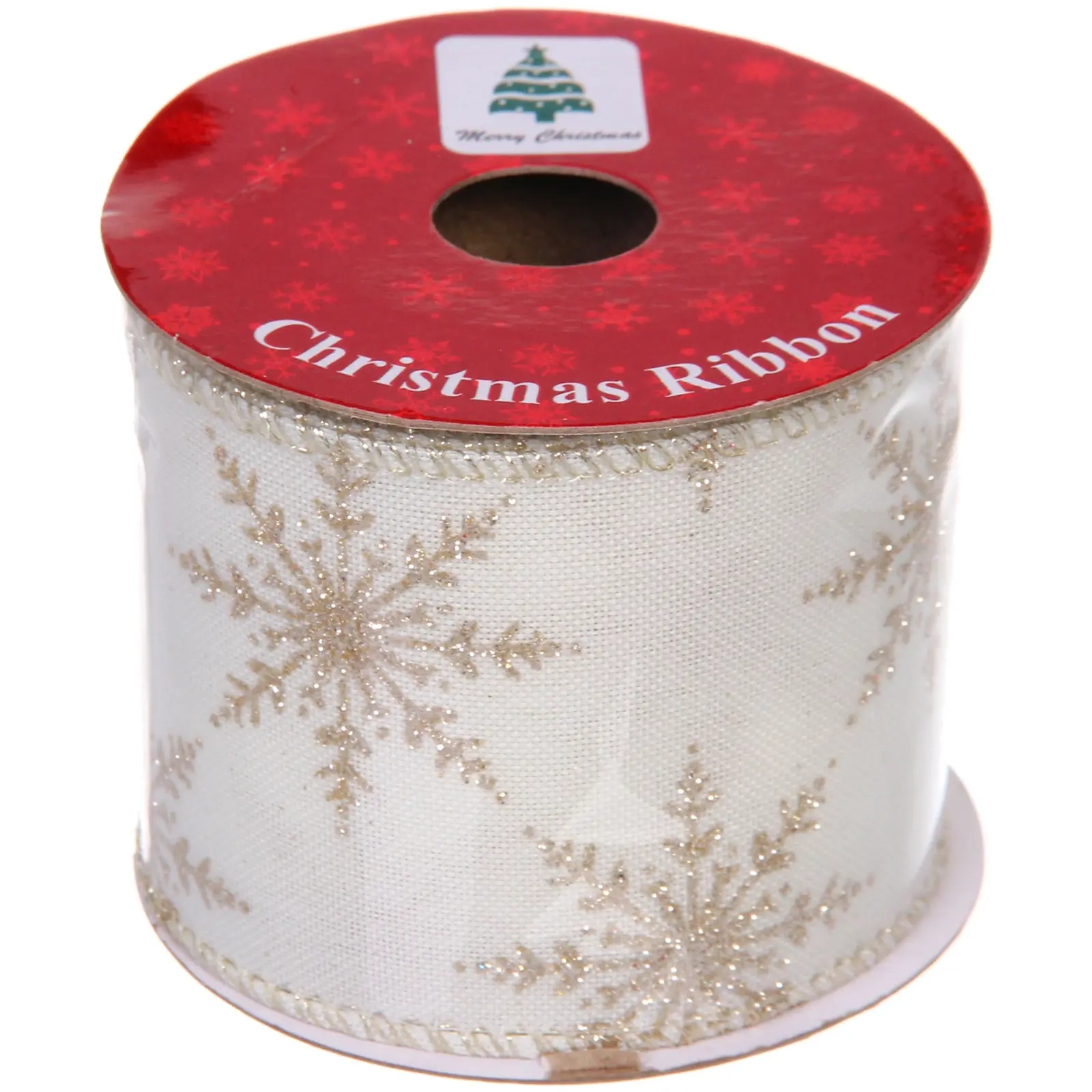 Лента декоративная 'Снежинка' 6.3см, 2.7м, цвет шампань, для подарков и елок
