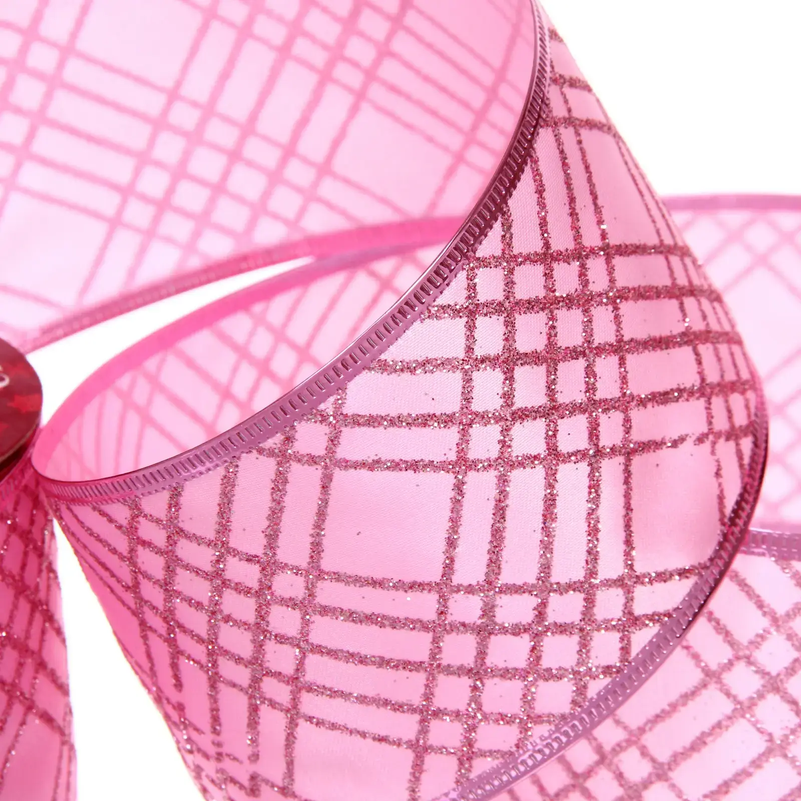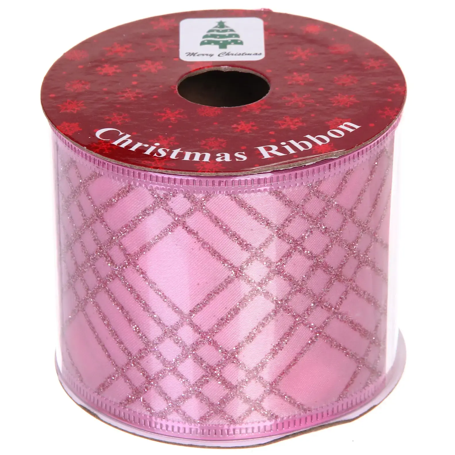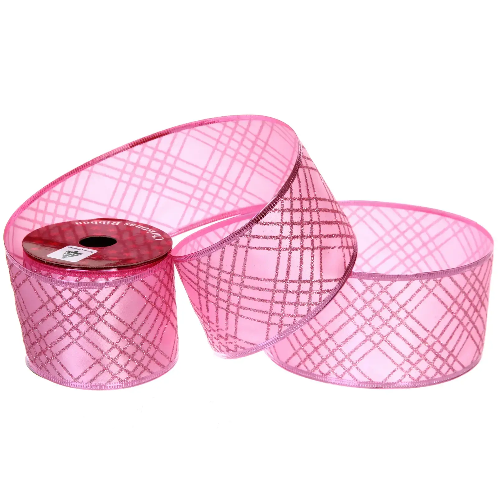 Лента декоративная "Таинственная паутина" 6.3х270см, розовый, блестящая сетка