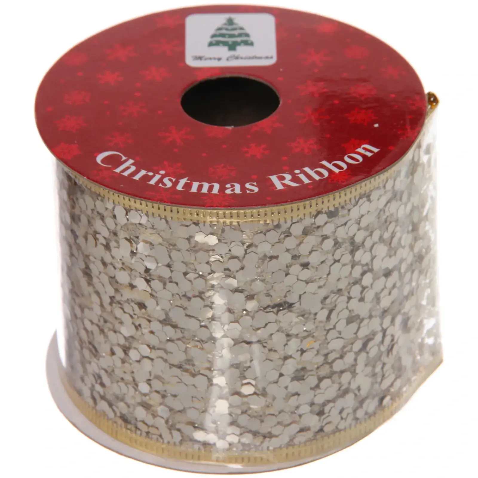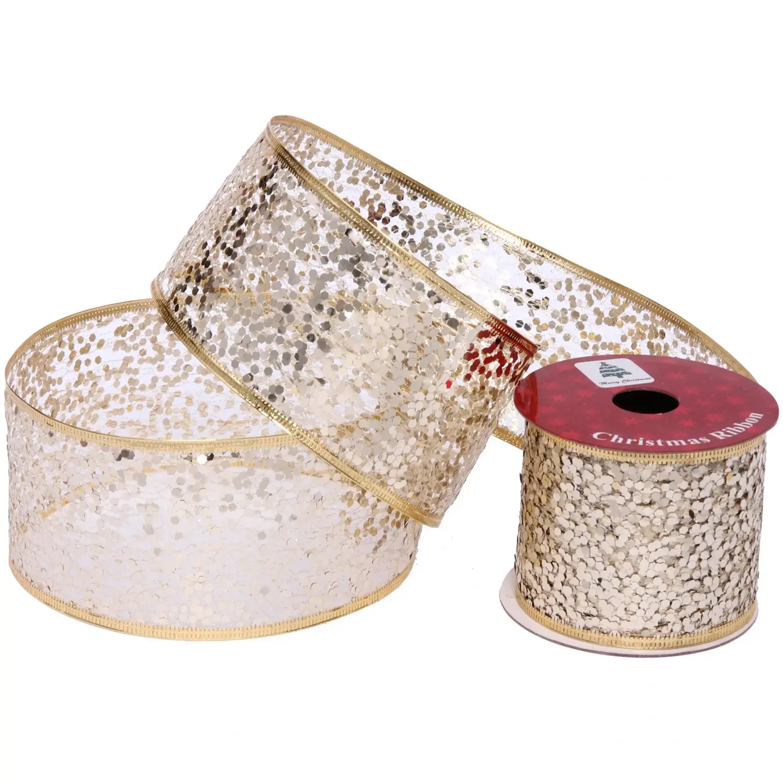 Лента декоративная «Волшебные искры» 6,3х270см, цвет шампань, с блестками