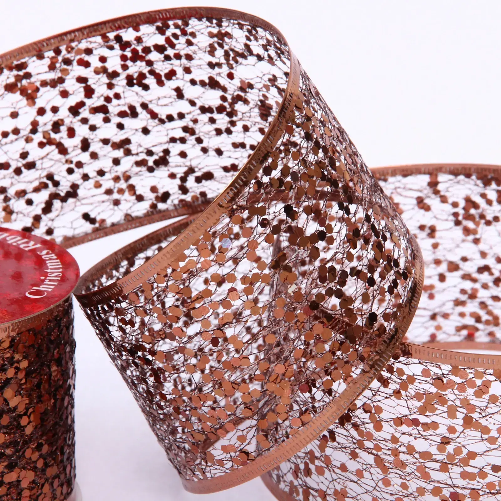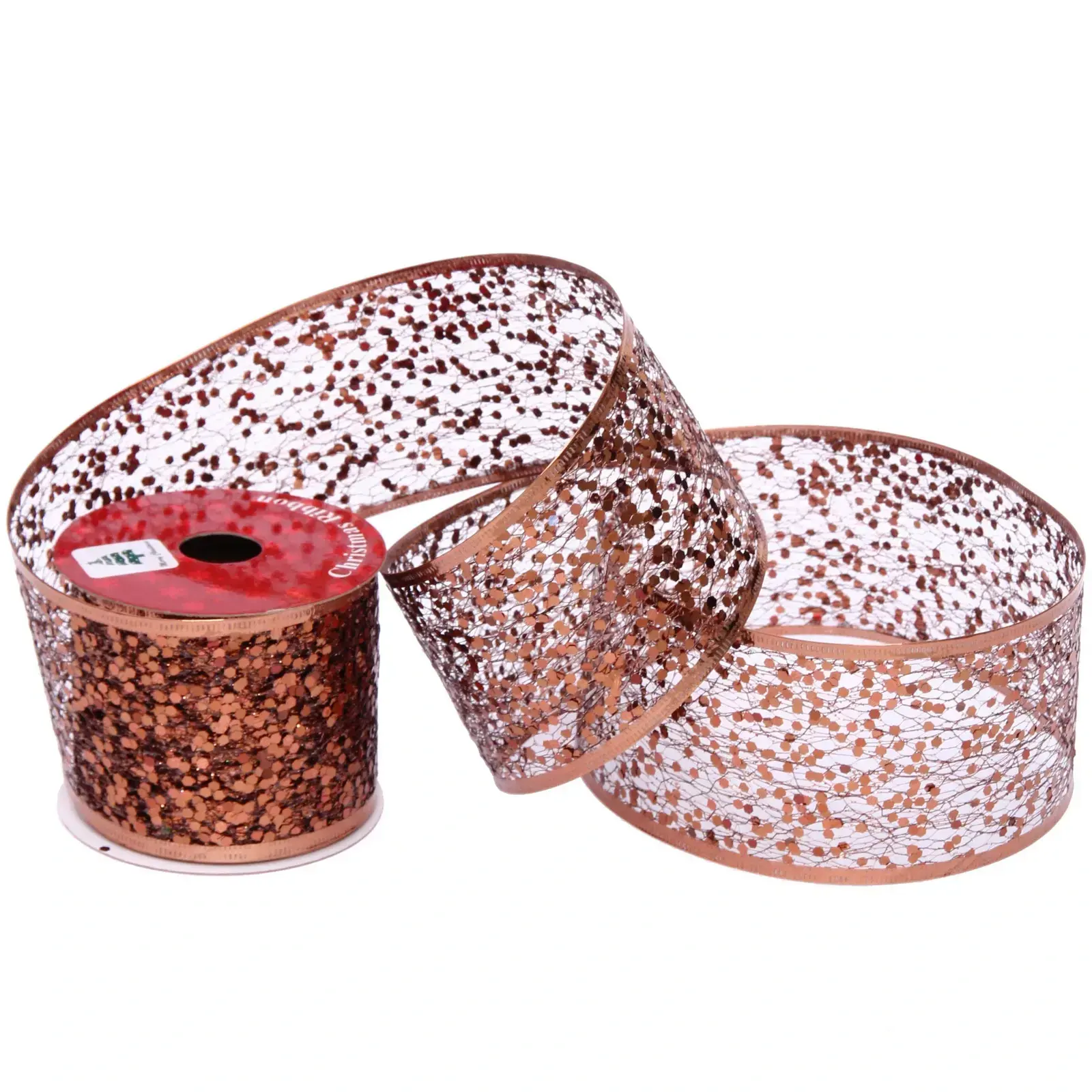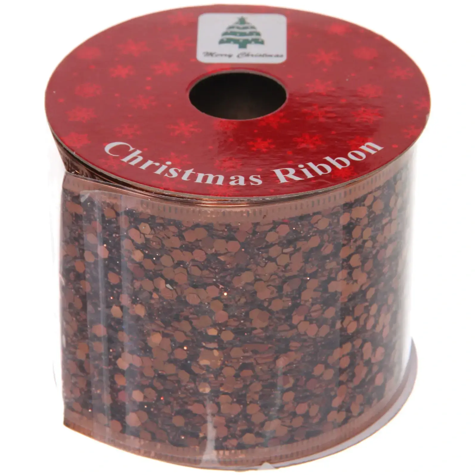 Лента декоративная «Волшебные искры», 6,3 см х 2,7 м, цвет шоколад, с блестками