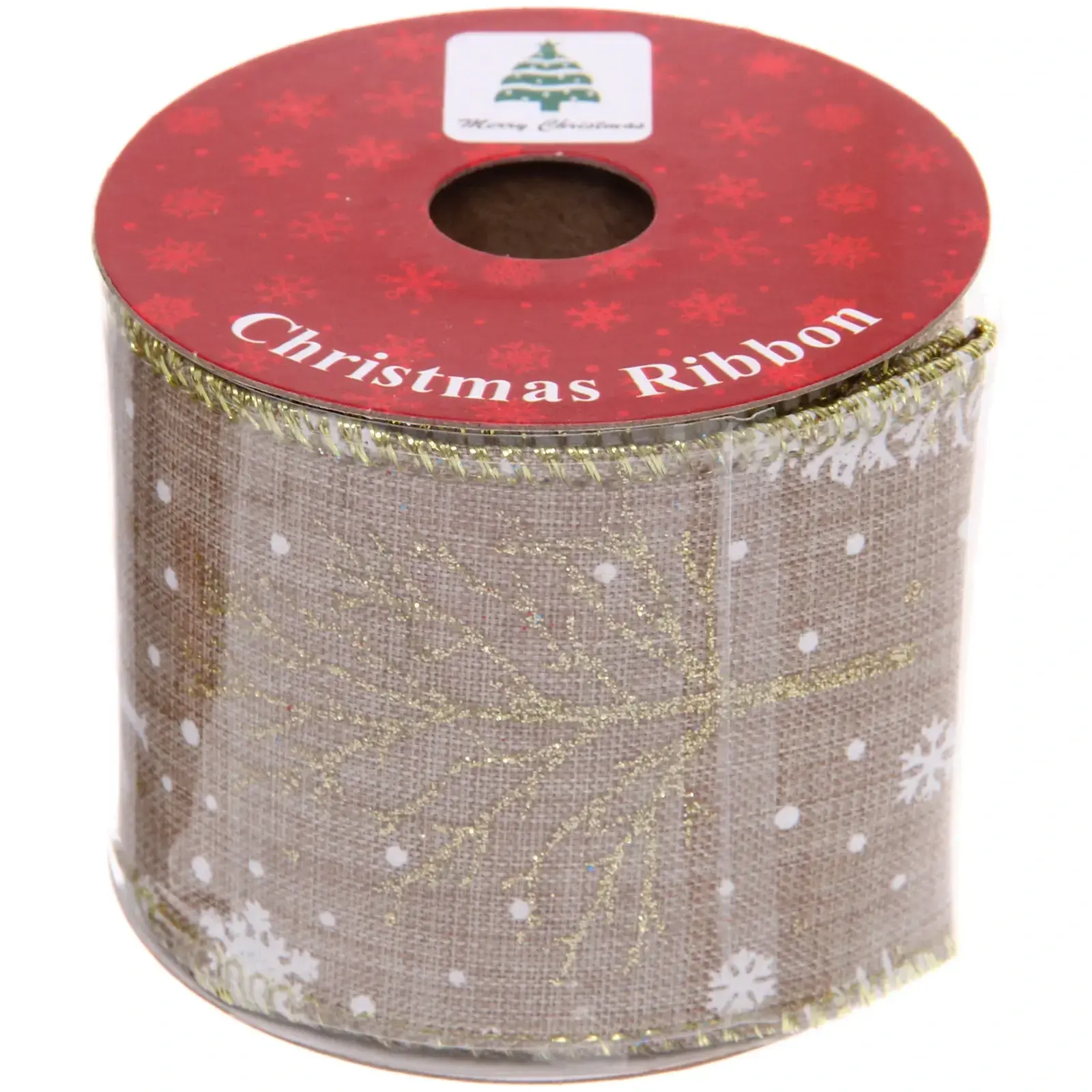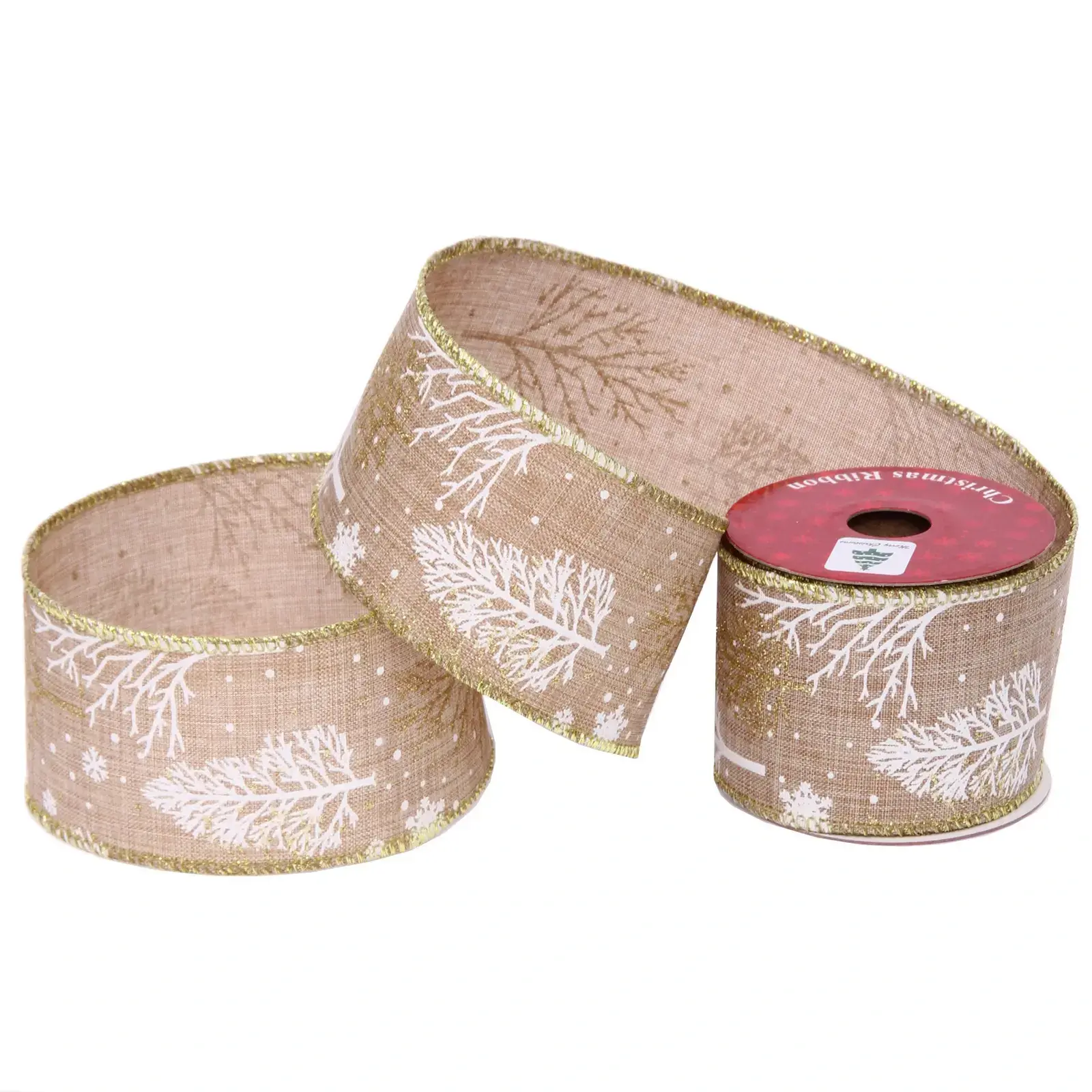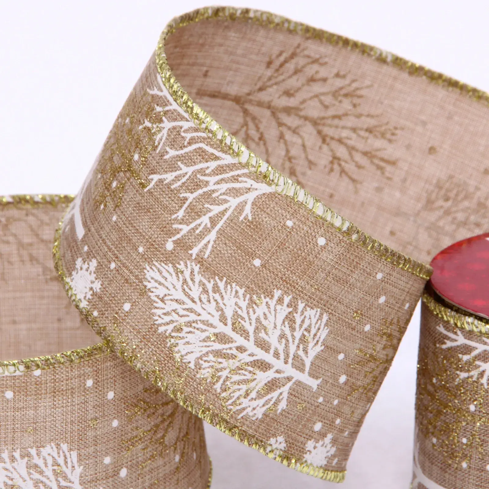 Выбирая ленту «Волшебный лес», вы получаете не только красивый элемент декора, но и надежный материал, который не потеряет своего вида даже после многократного использования. Ее светло-коричневый цвет с белыми узорами, напоминающими снежинки и сосновые ветви, создаст уютную атмосферу зимних праздников. Золотая отделка добавляет ленте роскоши и делает ее универсальной для различных стилей оформления.