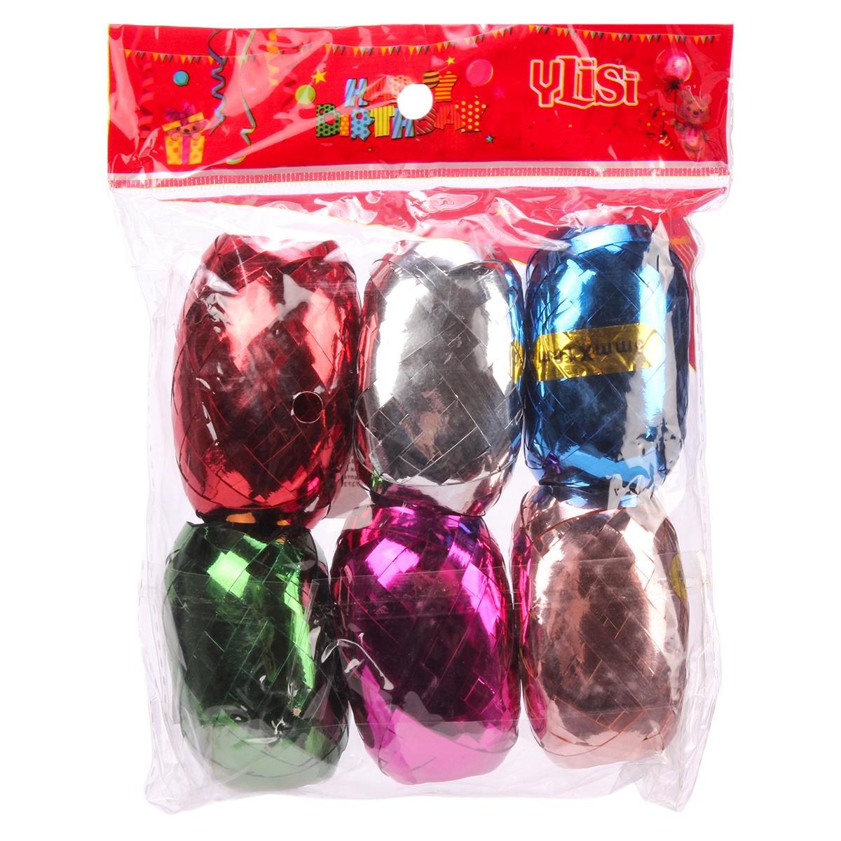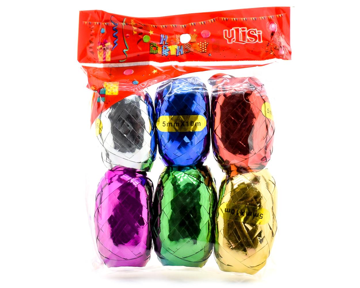 Лента упаковочная блестящая 'Ylisi', 5мм х 10м, 6 цветов, для подарков и декора