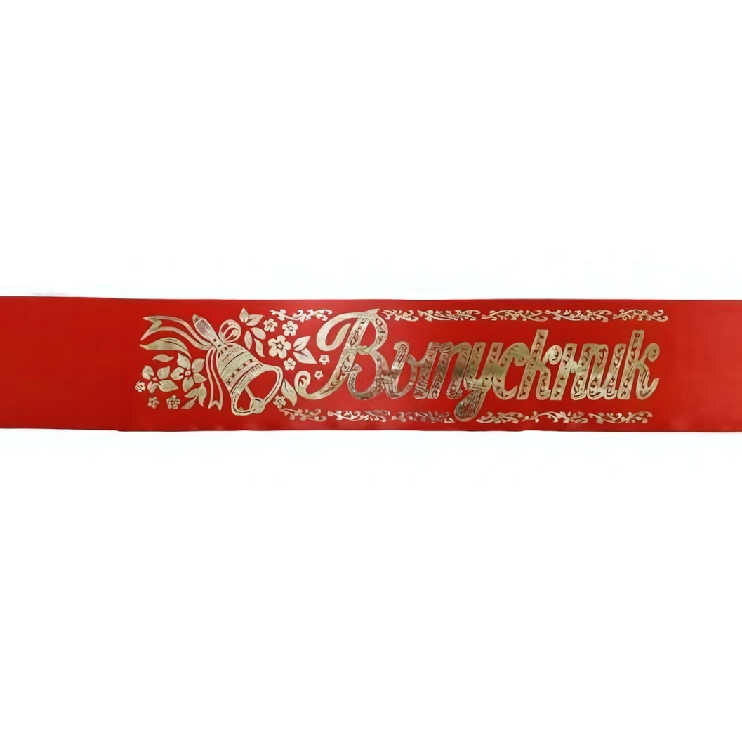 Эта лента – прекрасный способ отметить достижения и поздравить выпускника. Она подходит для использования на выпускных церемониях в школах, колледжах и университетах. Красный цвет ленты символизирует энергию и успех, а золотая надпись "Выпускник" придает ей особый шарм.