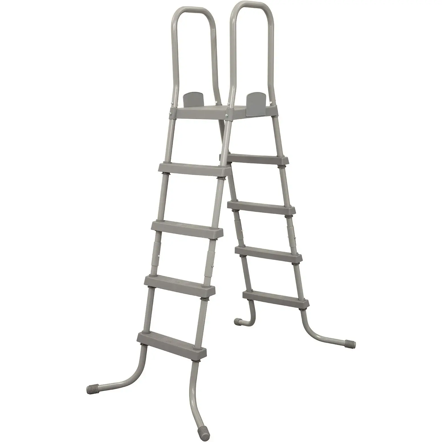 Эта лестница подходит для каркасных и надувных бассейнов, обеспечивая легкий и быстрый доступ к воде. Она имеет 4 широкие ступеньки с противоскользящей насечкой, что делает подъем и спуск безопасными даже в мокром состоянии. Лестница легко устанавливается и подходит для бассейнов с высотой борта до 132 см.