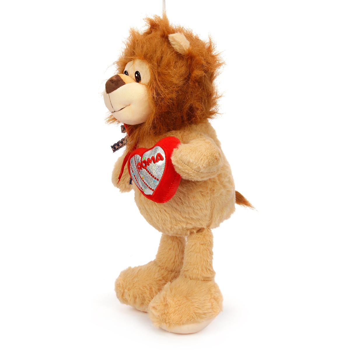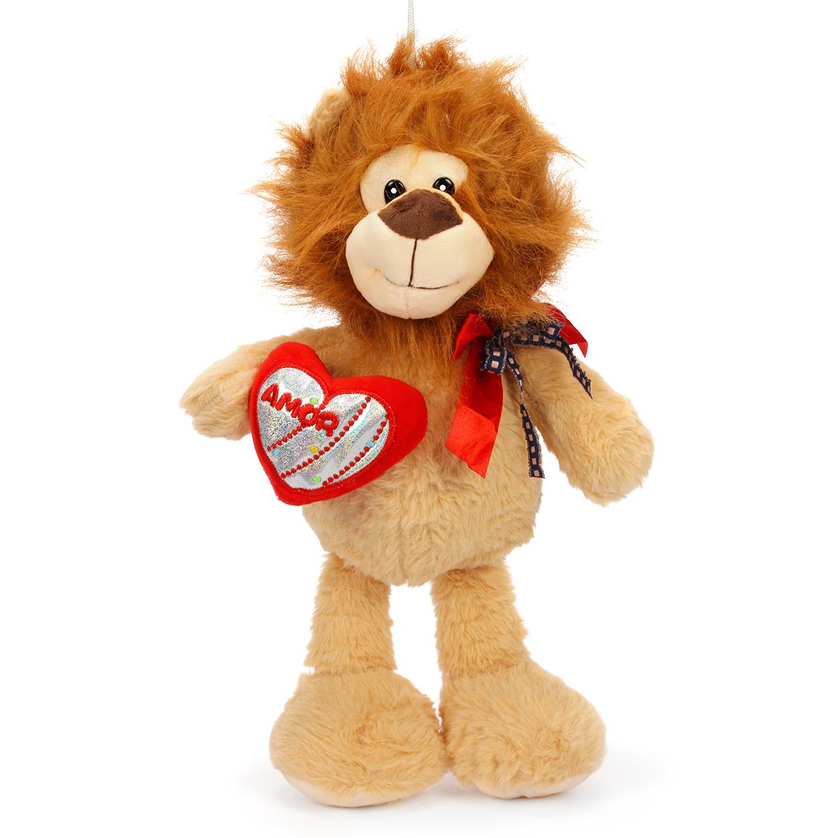 Мягкий лев 18x25x12см, коричневый, с сердцем AMOR и бантиком