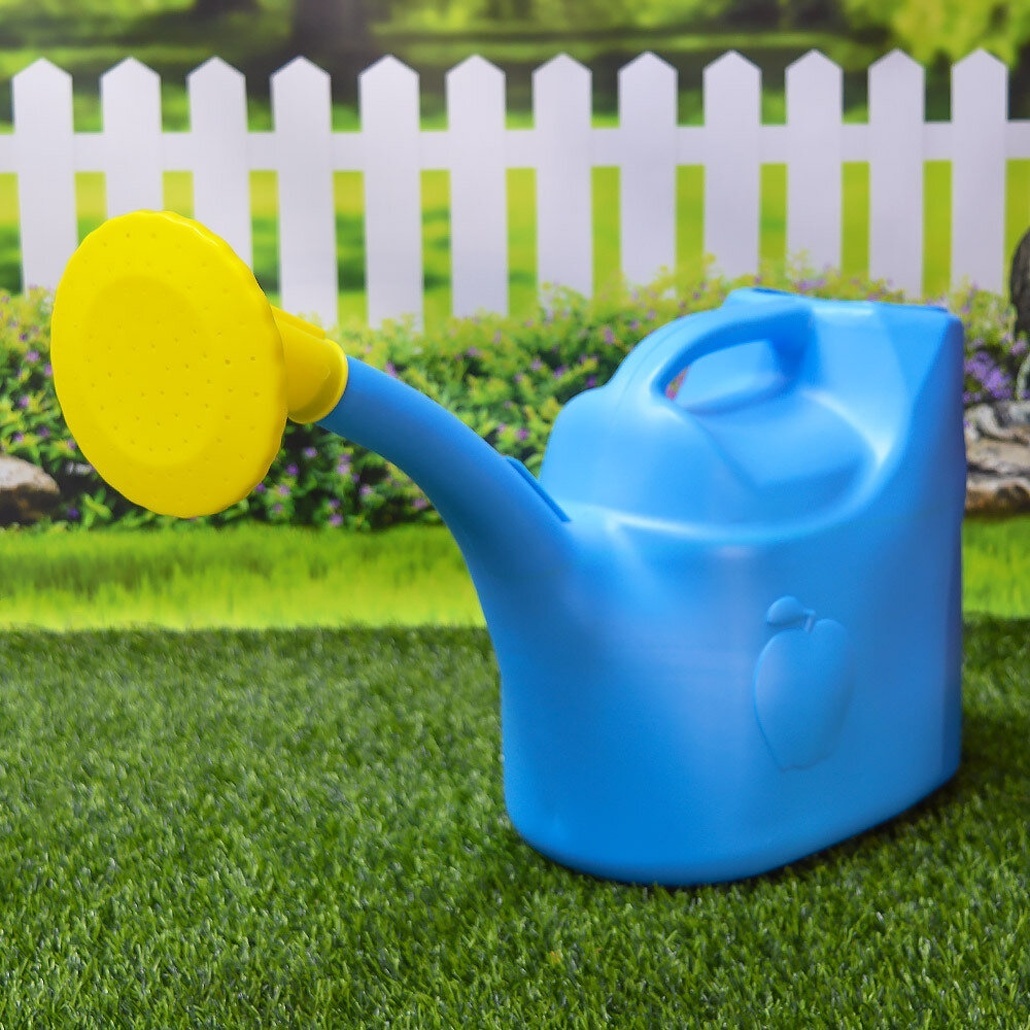 Стильный голубой корпус со съемной насадкой легко моется и сохраняет презентабельный вид. Рисунок яблока на боку добавляет декоративный акцент, превращая инструмент в элемент садового декора. При высоте 38 см и ширине 25 см лейка удобно размещается в руке и хранится в подсобном помещении.