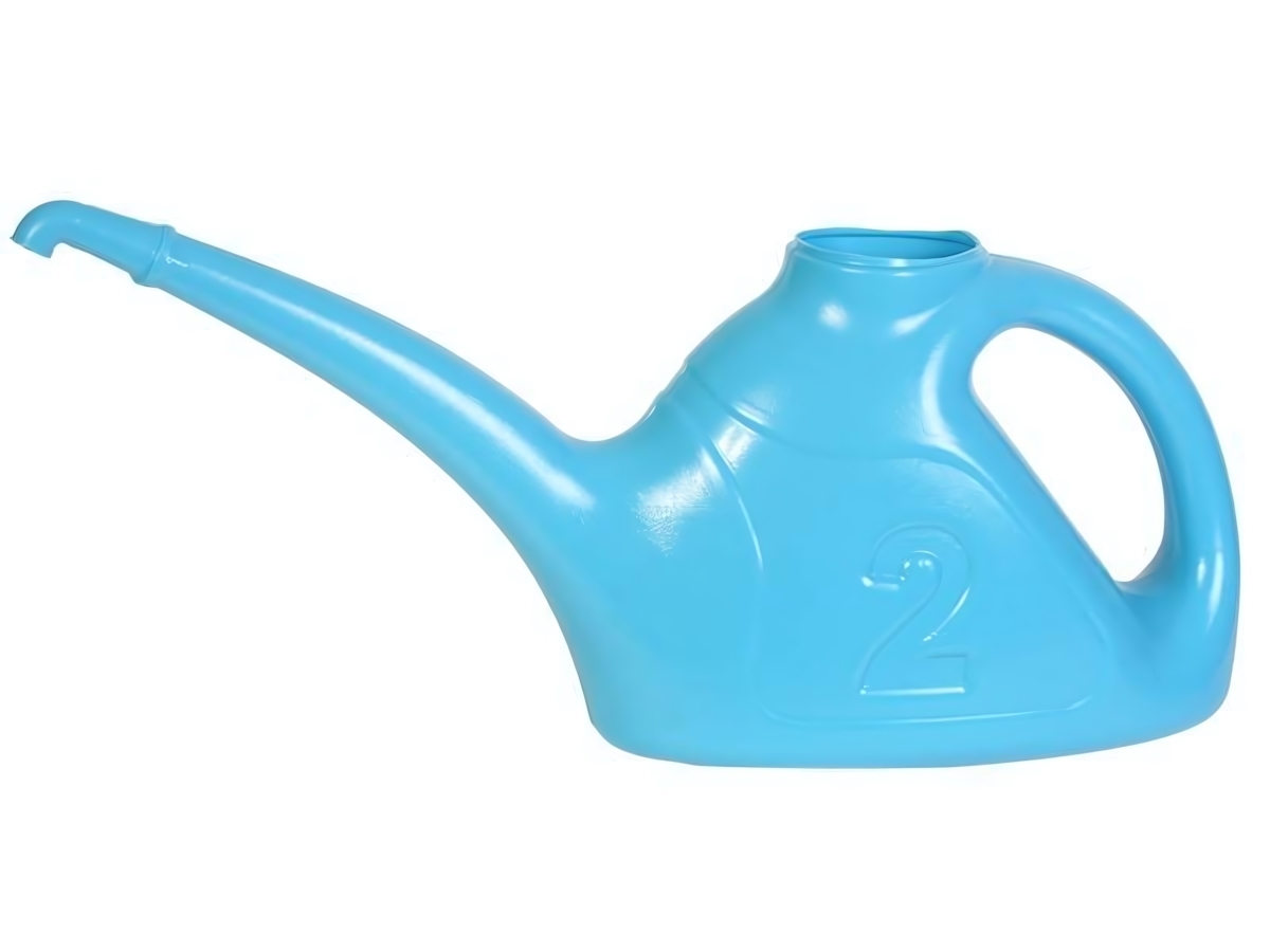 Лейка садовая 2л с эргономичной ручкой, пластик, голубая, для точного полива без рассеивателя