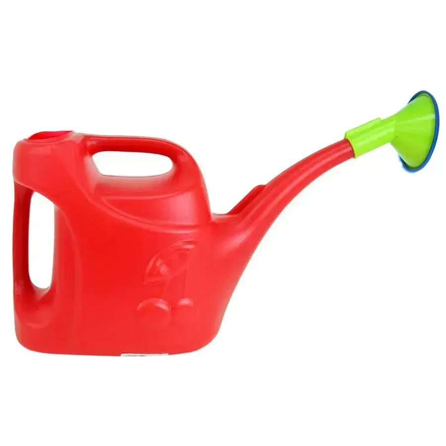 Ярко-красная лейка размером 20-25 см в длину и 10-12 см в ширину подходит как для домашнего использования, так и для работы в саду. Благодаря продуманной форме носика вода не проливается, а распылитель обеспечивает деликатный полив нежных растений.