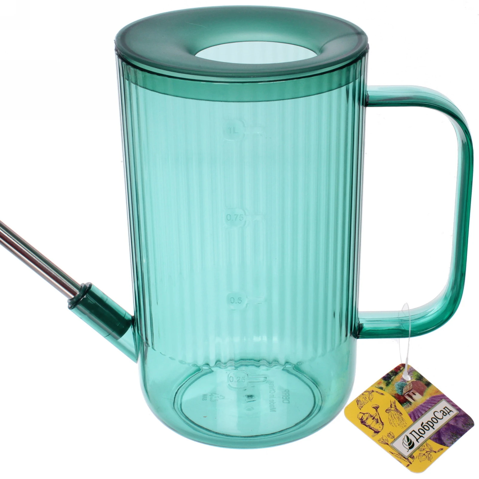 Лейка имеет объем 1 литр и выполнена в нефритовом цвете, что придает ей привлекательный вид. Длинный носик и широкое горлышко делают ее использование максимально удобным. Размеры лейки позволяют легко маневрировать даже в ограниченных пространствах, а рифленая поверхность обеспечивает надежный захват.