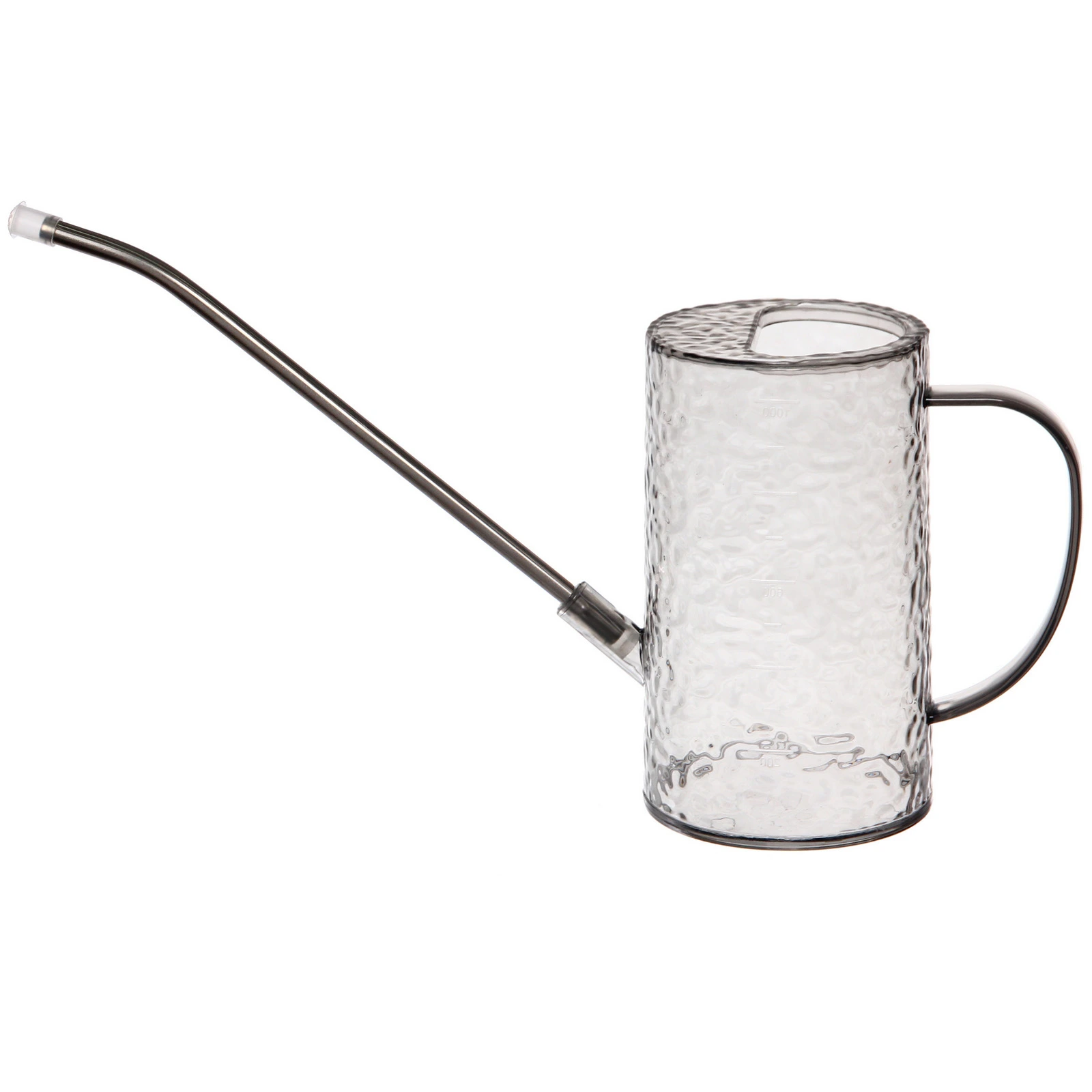 - Практичный и стильный дизайн: Цилиндрическая форма с рельефной фактурой и прозрачно-серый оттенок корпуса делают лейку не только функциональной, но и эстетичным предметом, который не придется прятать.
