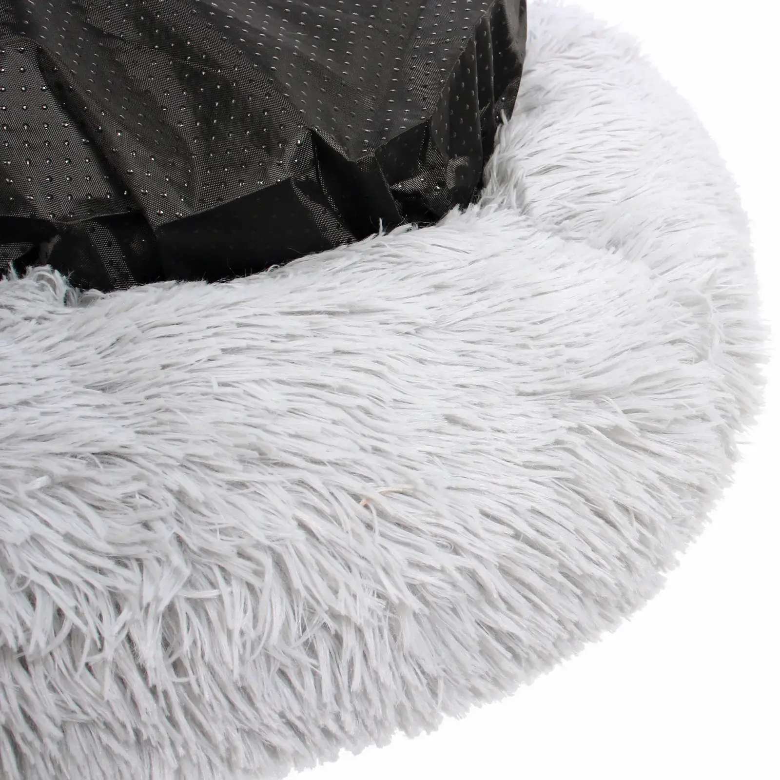 Мягкая круглая лежанка с высокими бортиками создаёт идеальное пространство для отдыха кошек и собак. Искусственный мех согревает в холодное время года, а упругие стенки поддерживают голову питомца во время сна.