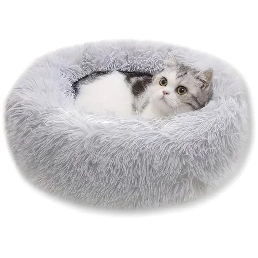 Круглая форма с углублением в центре повторяет естественную позу сна животных. Плотный наполнитель из холлофайбера равномерно распределяет нагрузку, а перфорированная подложка обеспечивает циркуляцию воздуха. Светло-серый цвет гармонично вписывается в любой интерьер.