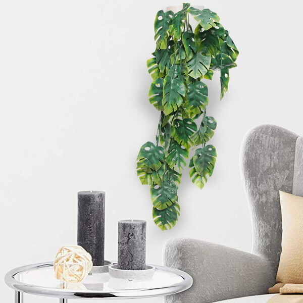 Лиана имеет длину 75 см и выполнена из прочного пластика, что гарантирует ее долговечность. Листья имеют характерные вырезы и текстуру, напоминающую настоящие листья монстеры, что придает ей естественный вид. Бледно-зеленый цвет легко вписывается в любой интерьер, будь то современный, классический или минималистичный.