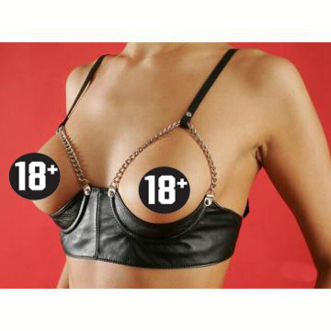 Лиф из натуральной кожи с цепочками, черный, SM (42-44), стиль БДСМ